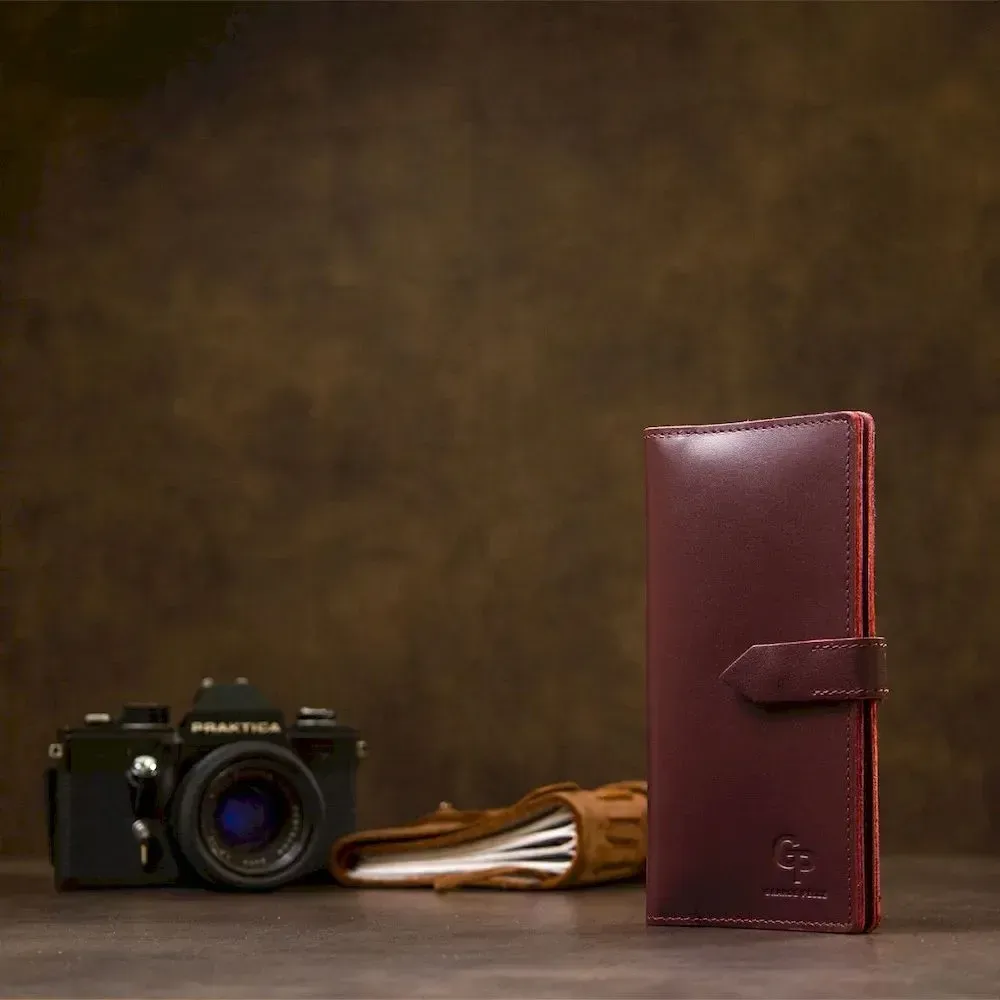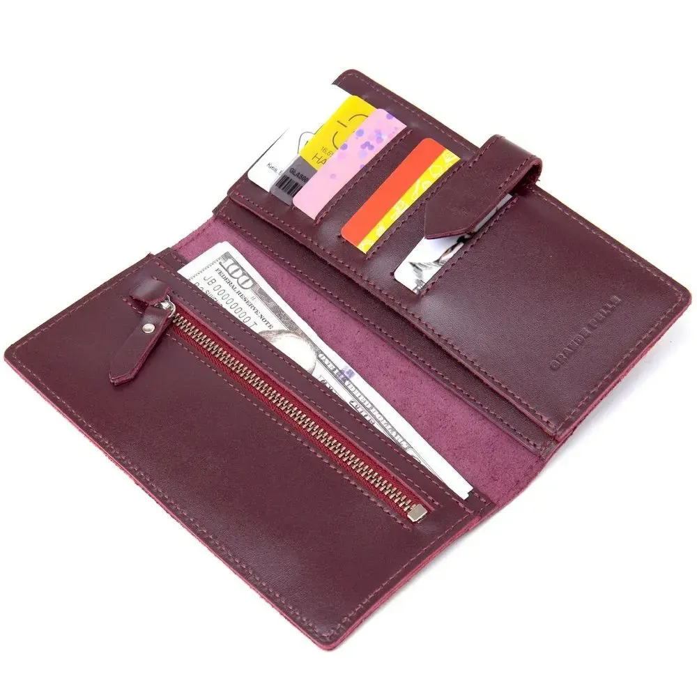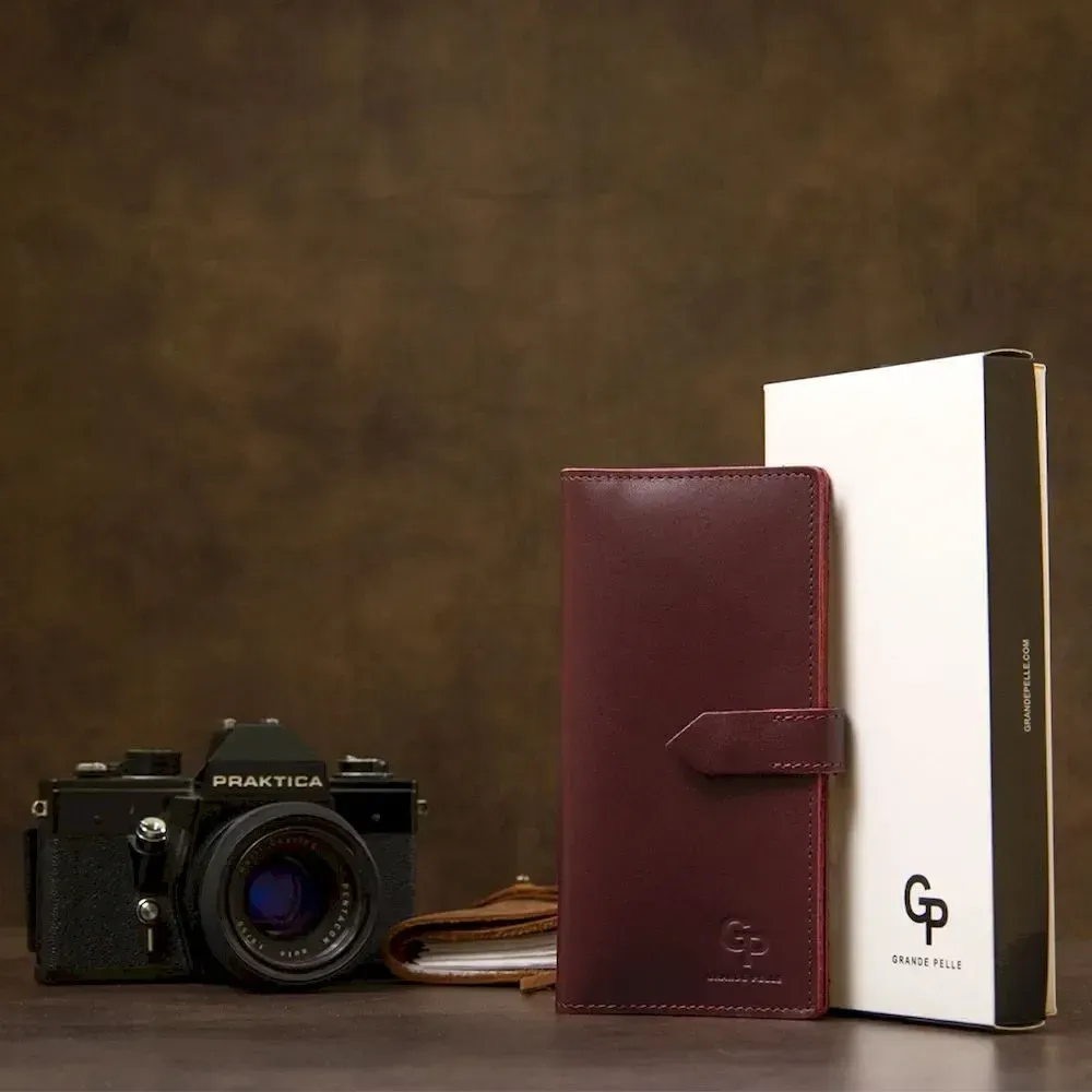 Шкіряне глянсове портмоне GRANDE PELLE 11467 Бордовий