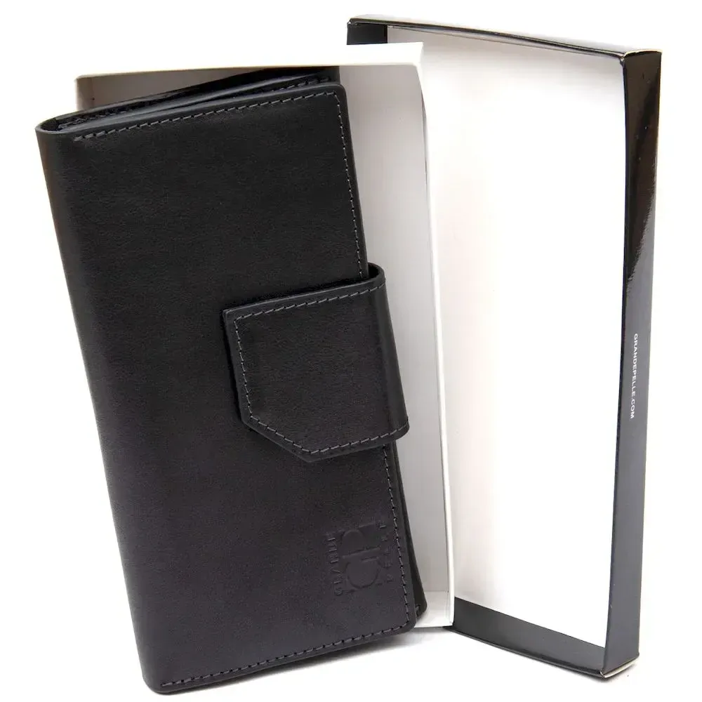 Шкіряне глянсове портмоне GRANDE PELLE 11471 Чорний