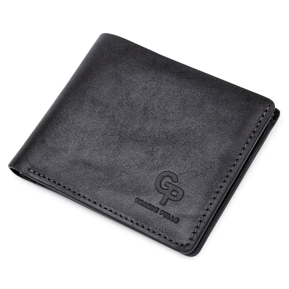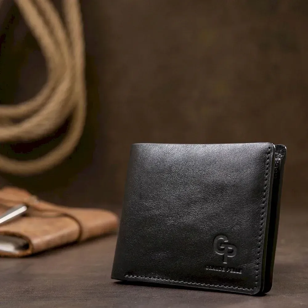 Шкіряне чоловіче глянсове портмоне GRANDE PELLE 11554 Чорний
