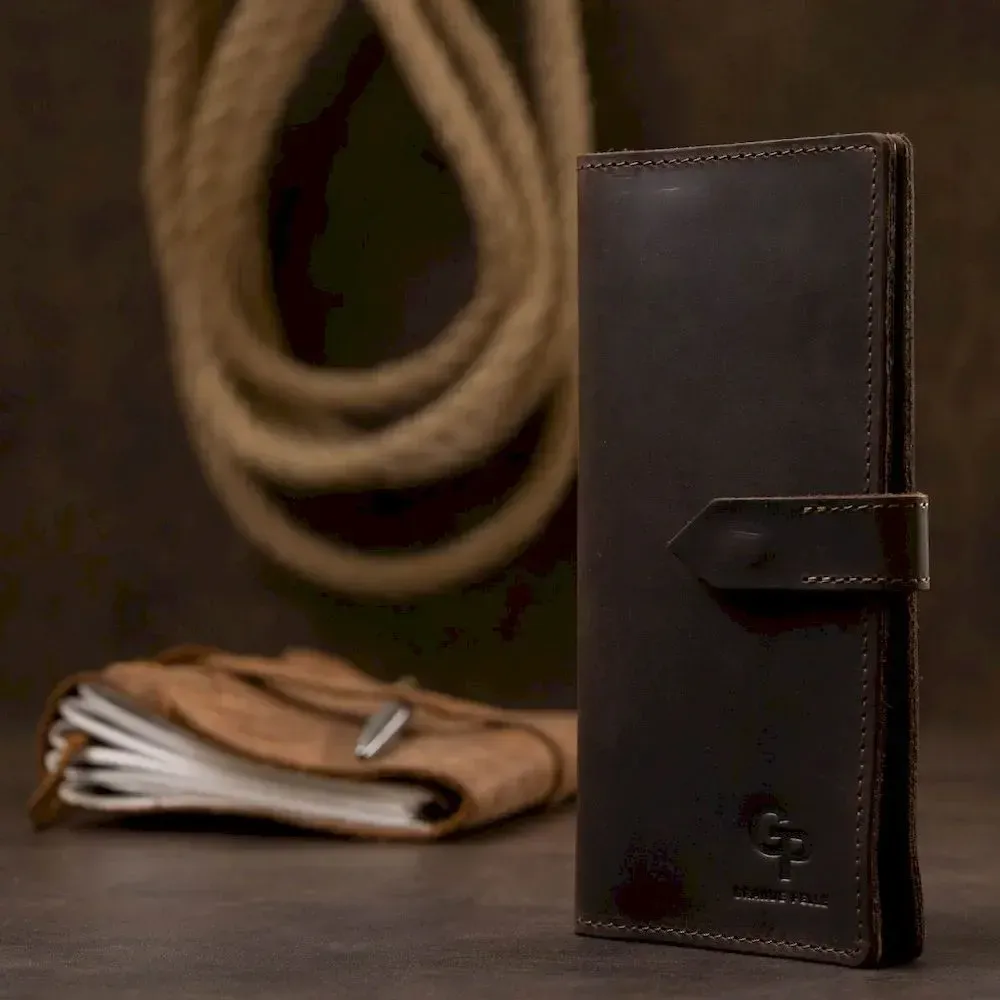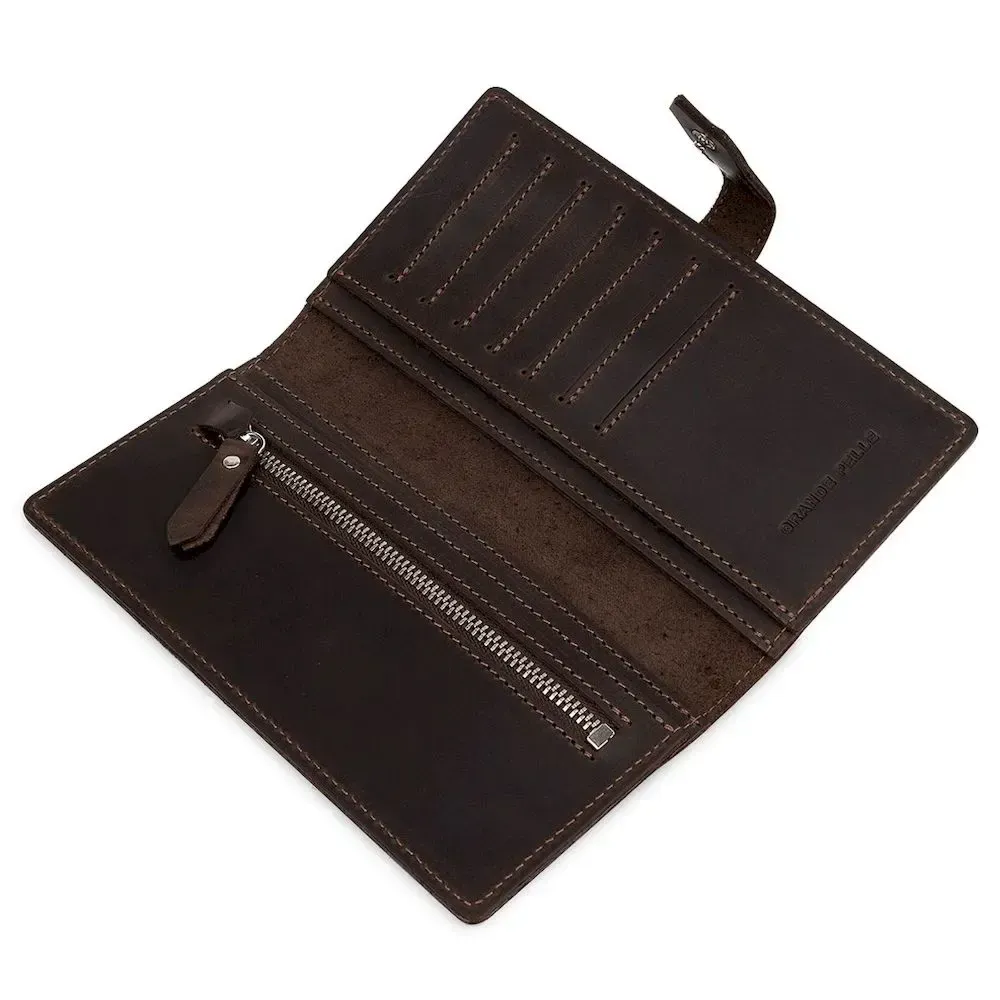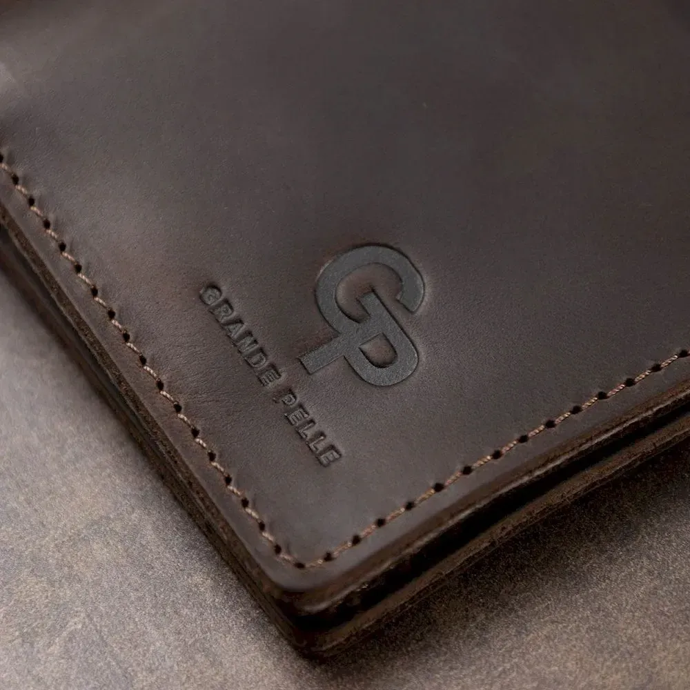 Шкіряне чоловіче матове портмоне GRANDE PELLE 11515 Коричневий
