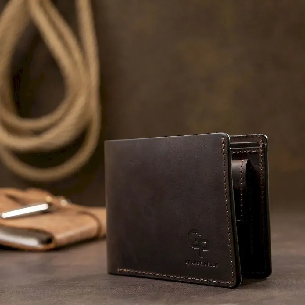Шкіряне чоловіче вінтажне портмоне GRANDE PELLE 11553 Коричневий