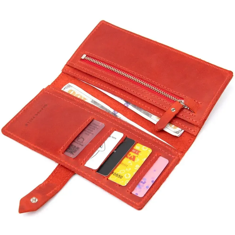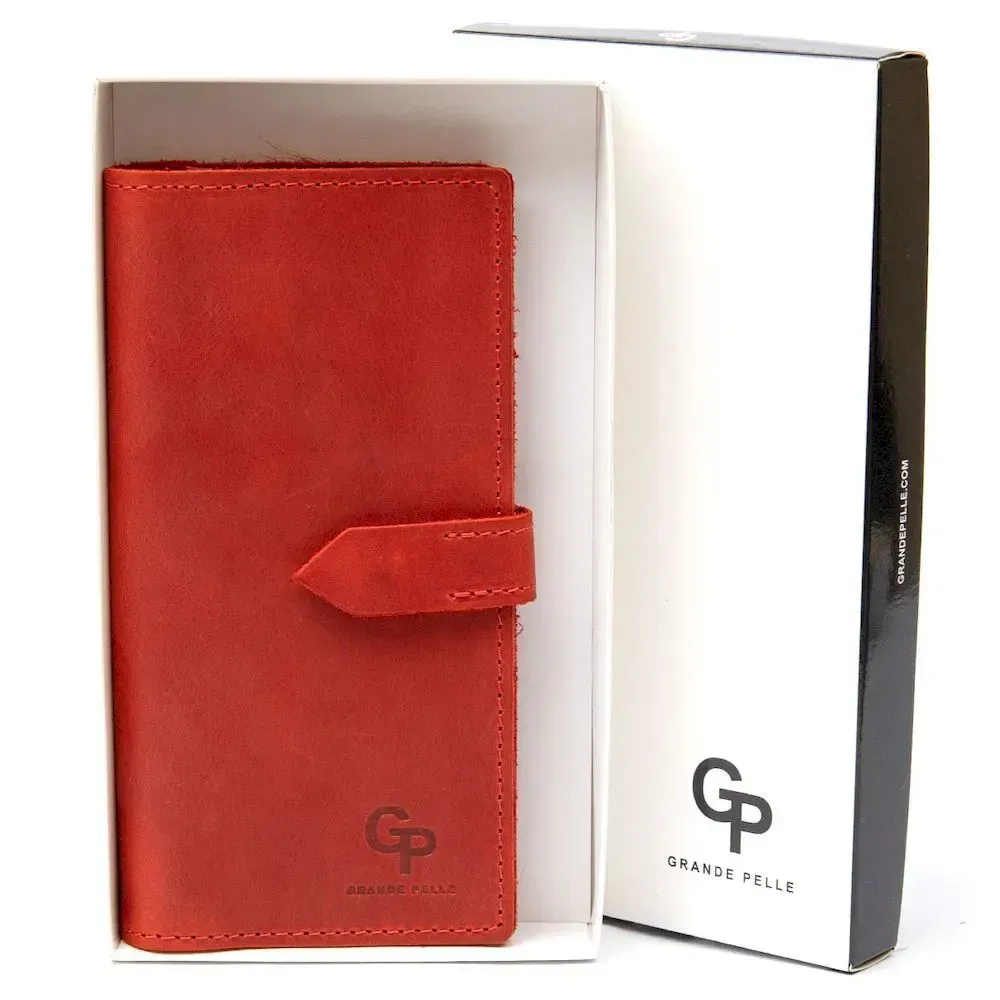 Шкіряне вінтажне жіноче портмоне GRANDE PELLE 11470 Червоний
