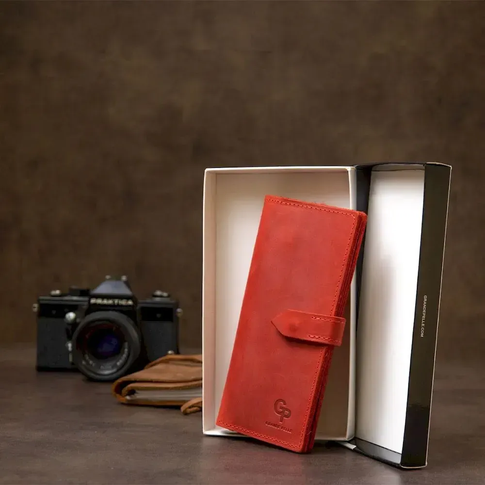 Прекрасне високоякісне портмоне в красивому червоному кольорі, що виглядає дуже жіночно і стильно. Фактура виробу – vintage з ефект старовини. Усередині присутні місткі відділення для купюр, кредитних карток та монет. Цей аксесуар стане чудовим подарунком для будь-якої жінки.