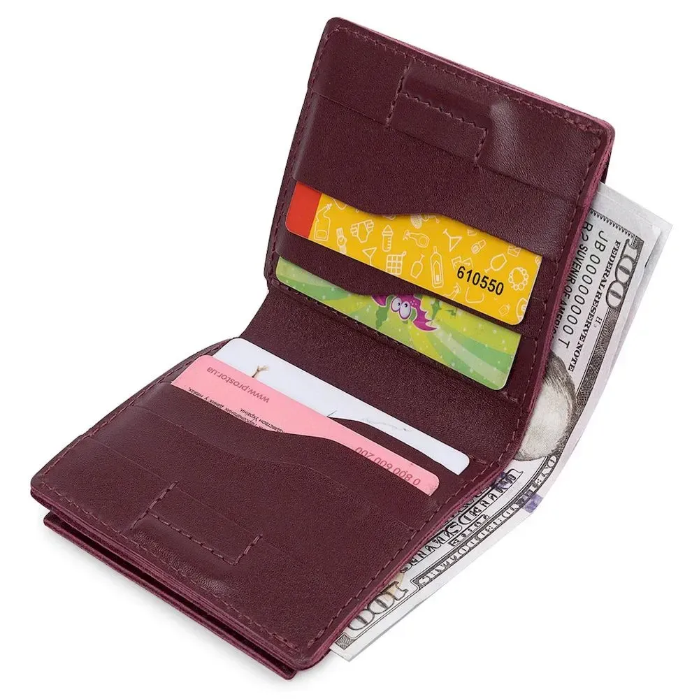 Зручне та практичне жіноче портмоне високого класу виконання від українського виробника. Матеріал виготовлення – натуральна зносостійка шкіра. Має гладку та приємну на дотик фактуру, колір виробу – ; бордовий. Усередині є просторе відділення для купюр, слоти для кредитних карток. На зовнішній стороні розмістилася невелика монетниця на блискавці.