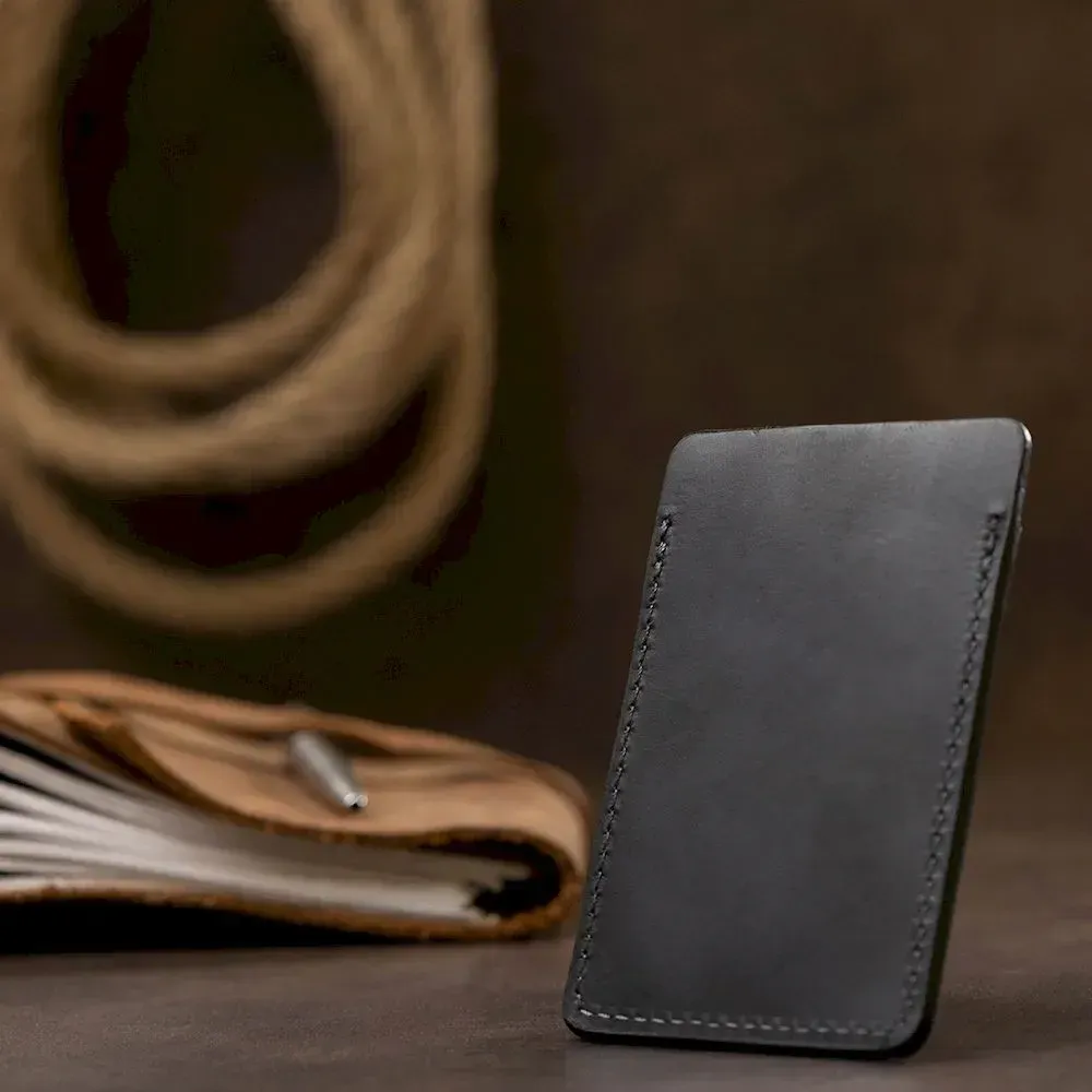 Невеликий картхолдер на одне відділення від українського виробника. Має красиву матову гладку фактуру та соковитий чорний колір. Виконаний аксесуар із натуральної високоякісної шкіри. У таку візитницю можна покласти пару найнеобхідніших карток і тримати їх завжди при собі.