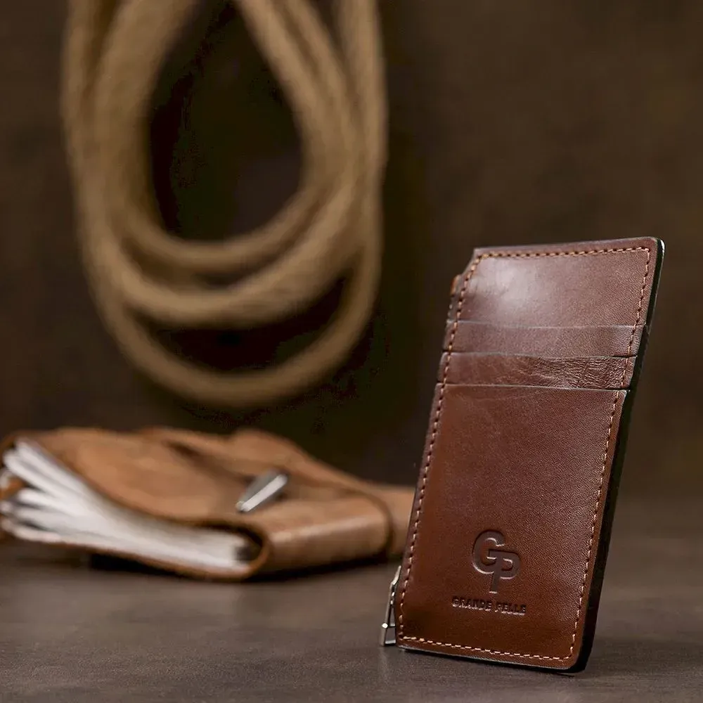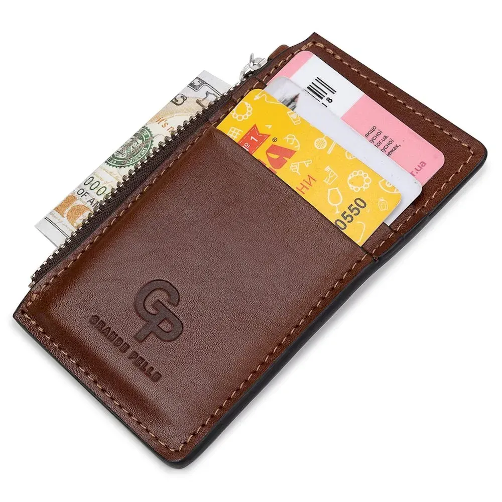 Шкіряний чоловічий картхолдер GRANDE PELLE 11400 Коричневий
