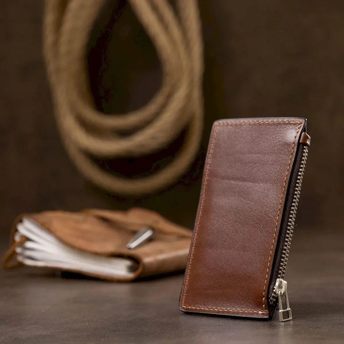Практичний чоловічий картхолдер для невеликої кількості карток, але які завжди повинні бути під рукою. Виконаний із натуральної зносостійкої шкіри. Колір виробу – коричневий, що виглядає дуже стильно. Упаковка представлена у вигляді ущільненого фірмового чохла.