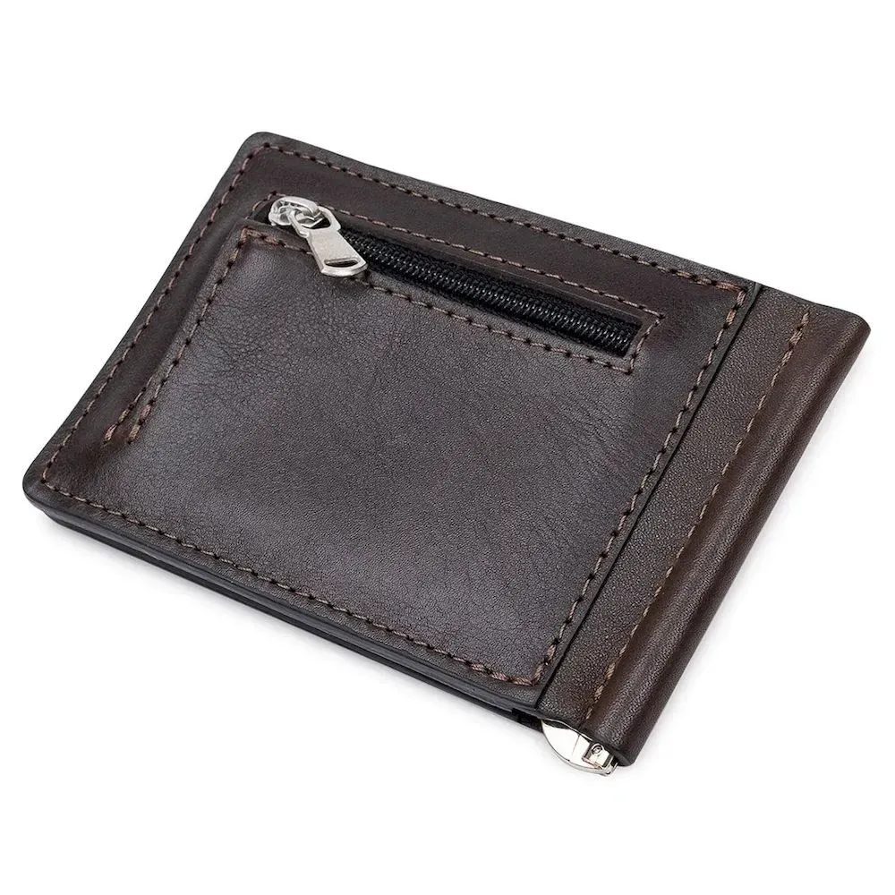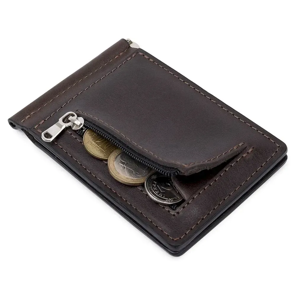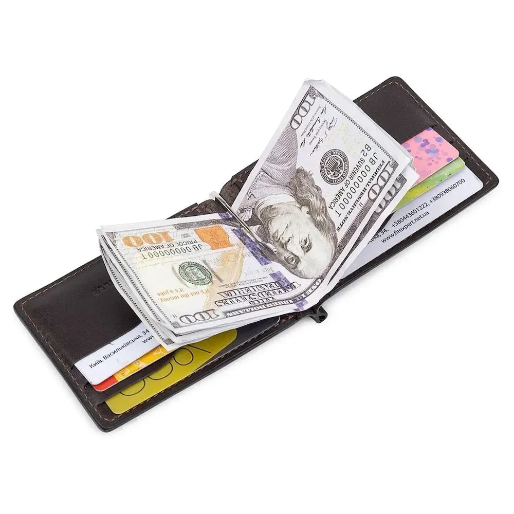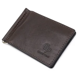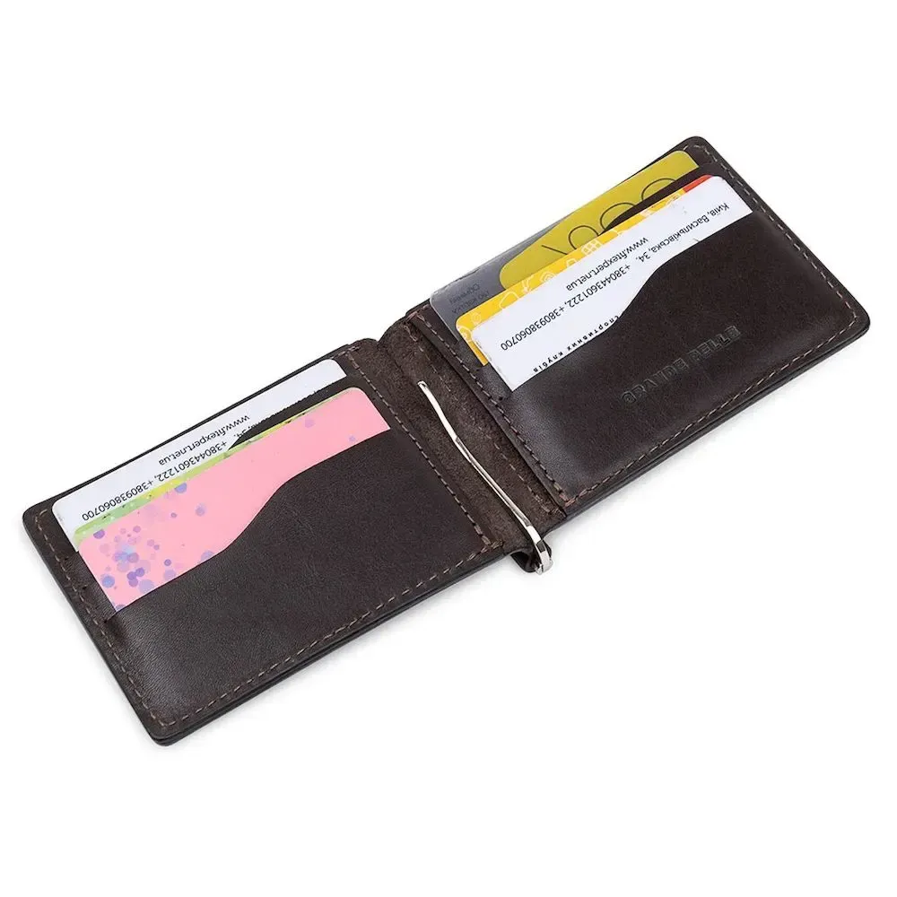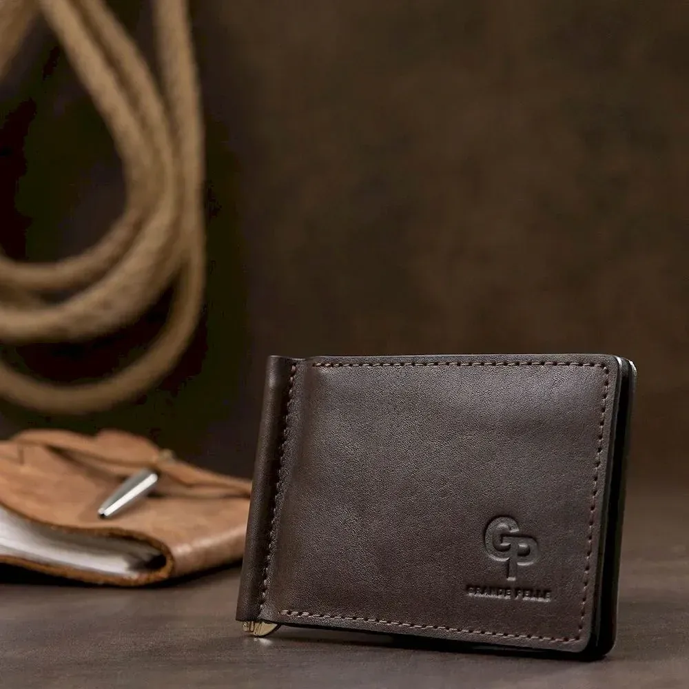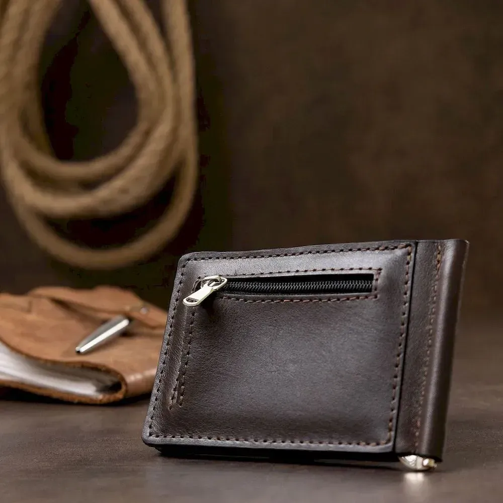 Шкіряний чоловічий затискач для грошей з монетницею GRANDE PELLE 11547 Коричневий