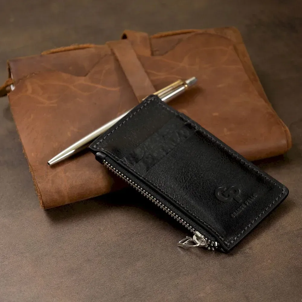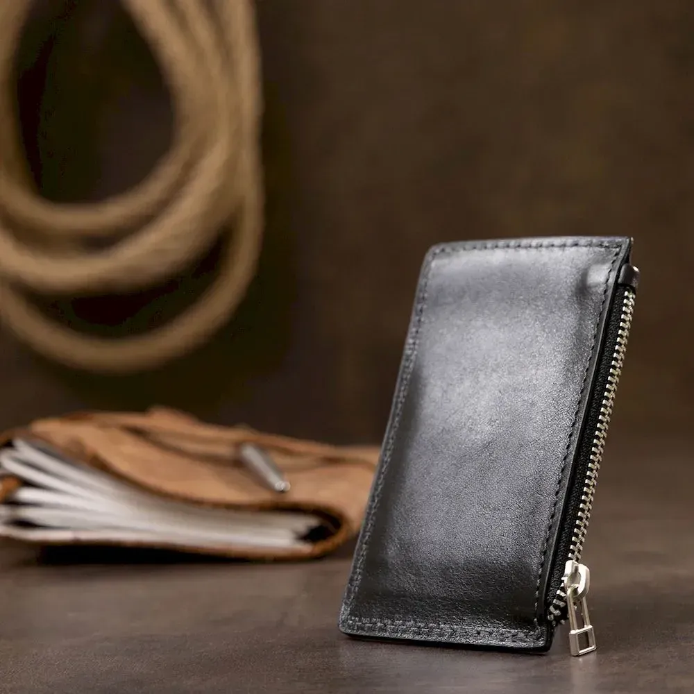Невеликий шкіряний картхолдер від українського виробника. Виконаний з натуральної шкіри високої якості, яка стійка до зносу та пошкоджень. Має три відкриті кишені для карт та одне відділення на блискавці для карт чи дрібниці. Запакований аксесуар у фірмовий чохол ущільнений.