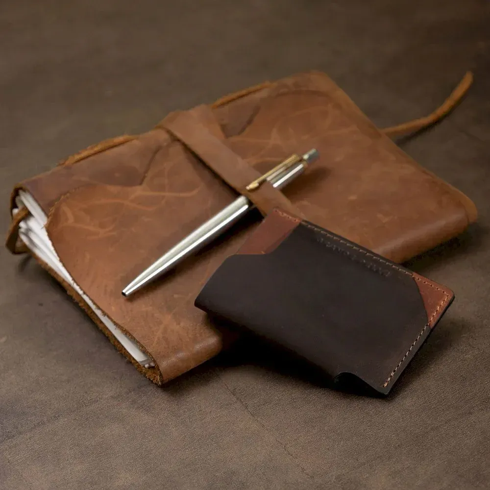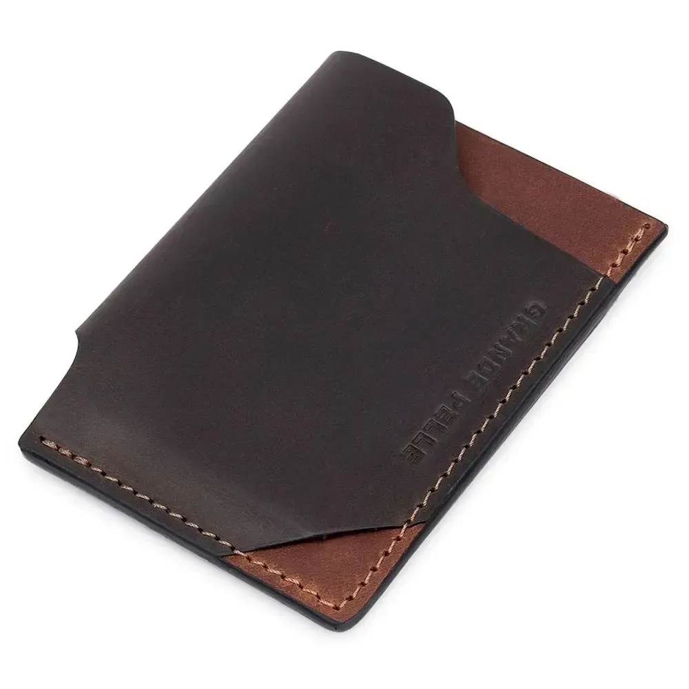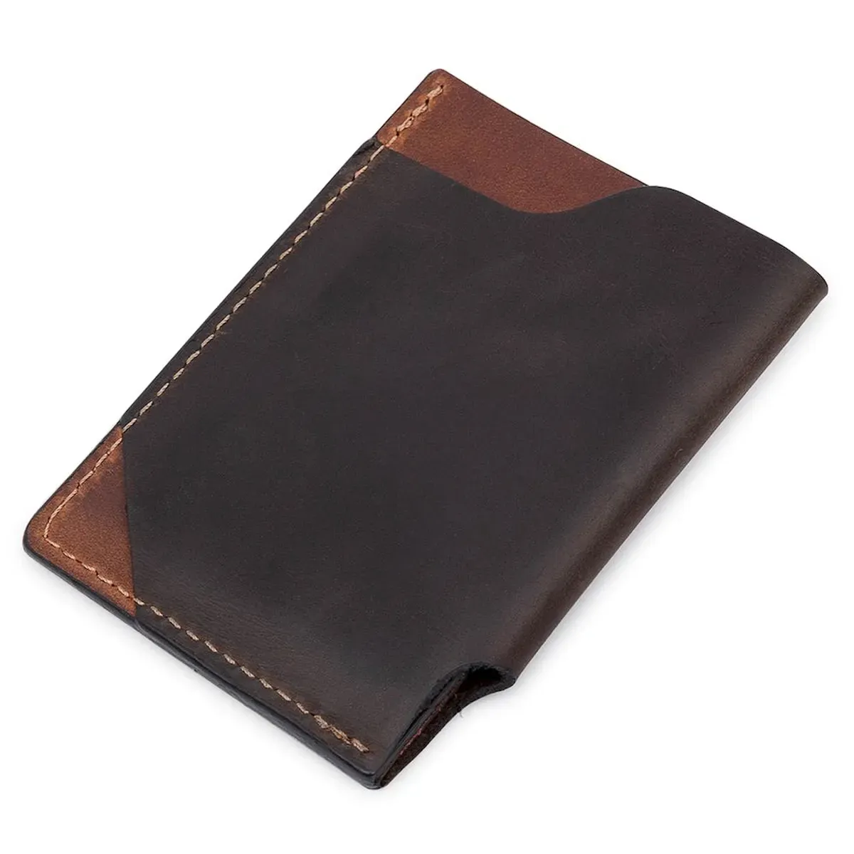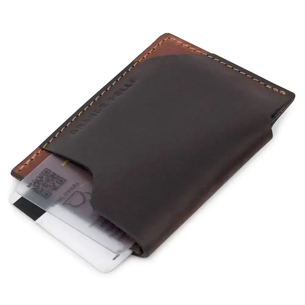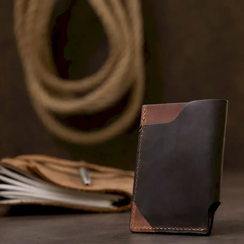 Незвичайний картхолдер з натуральної шкіри високої якості. Має гладку матову фактуру та гарне поєднання коричневого кольору різних відтінків. На лицьовій стороні є тиснення логотипу бренду. Запакований виріб у фірмовий чохол, тому може стати гарним презентом для близької людини.