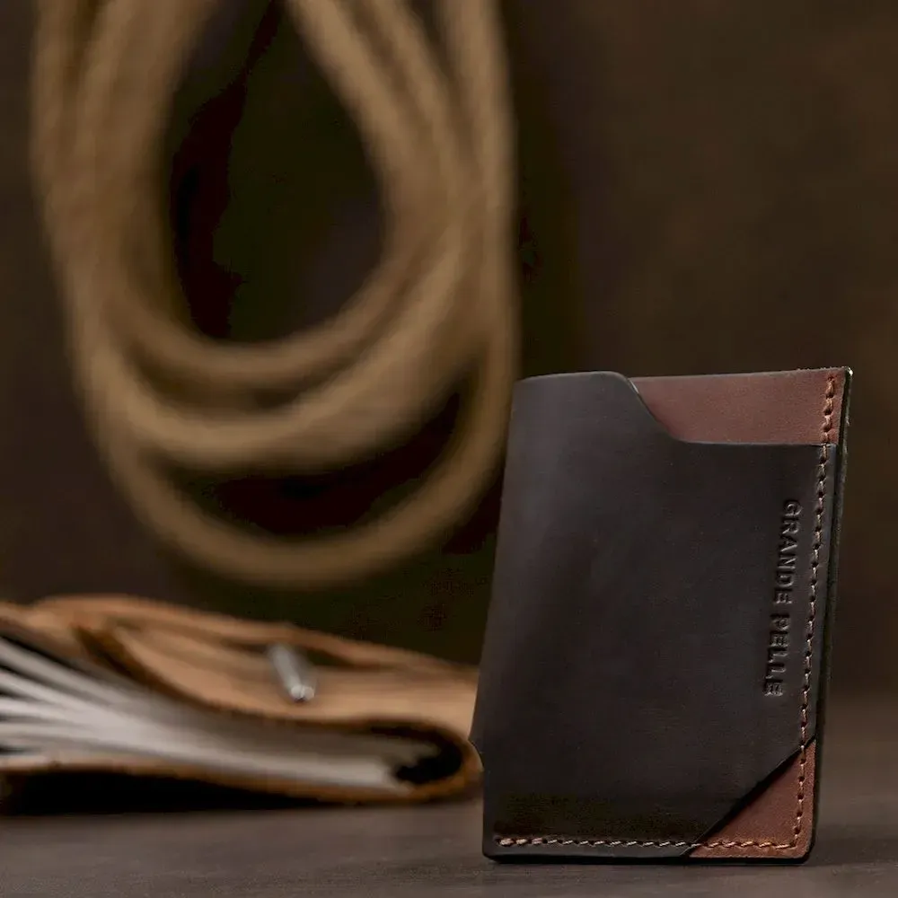 Шкіряний незвичайний картхолдер GRANDE PELLE 11534 Коричневий