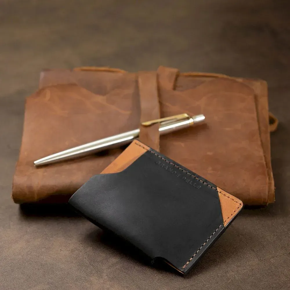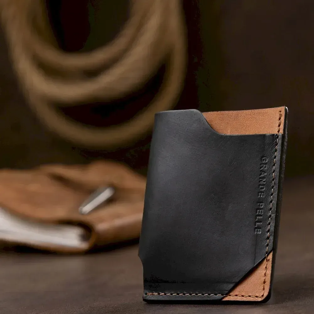 Оригінальний шкіряний картхолдер з натуральної висококласної шкіри від українського виробника. Має гарне поєднання чорного та коричневого кольорів. Відмінно поміститися в гаманець, кишеню чи сумку будь-якого розміру. Запаковано виріб у щільний фірмовий чохол.