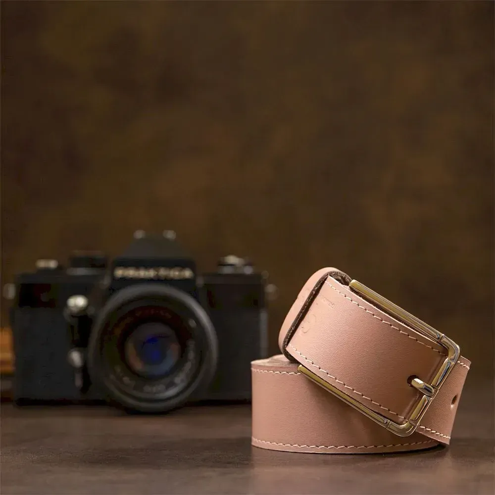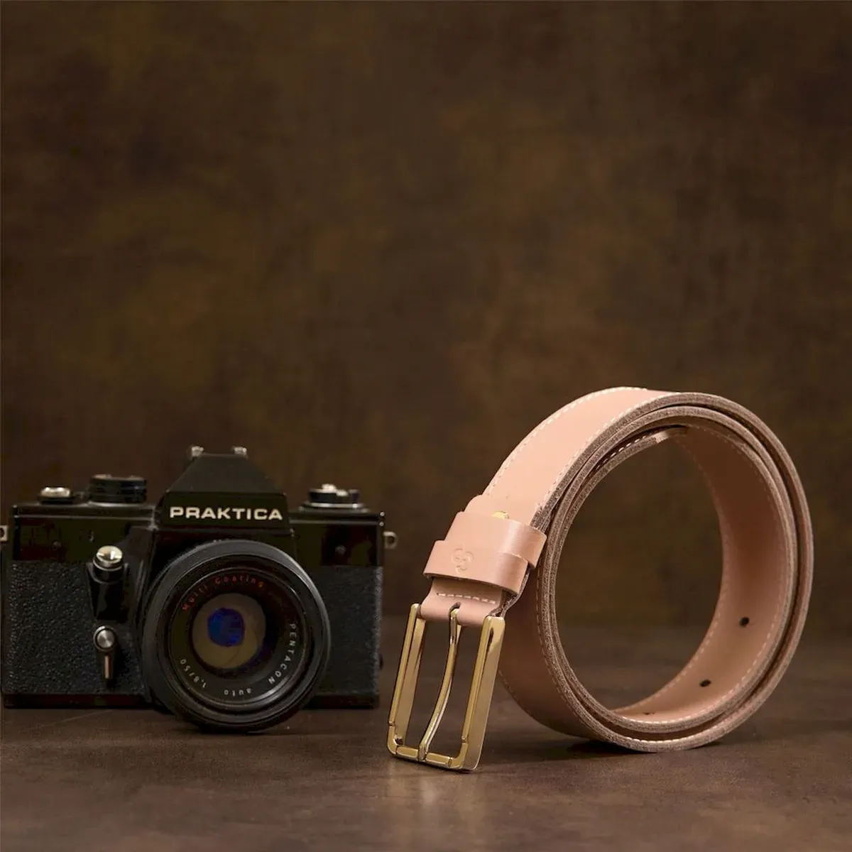 Красивий непомітний жіночий ремінь у блідо-рожевому злегка вловимому відтінку. Матеріал виготовлення – високоміцна добротна шкіра. Пряжка має лаконічний стриманий дизайн. Відмінний подарунок коханій жінці.