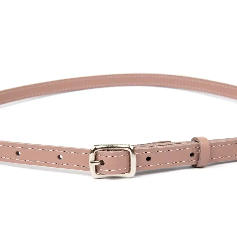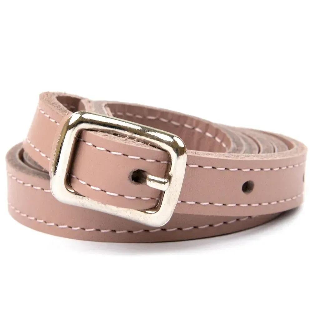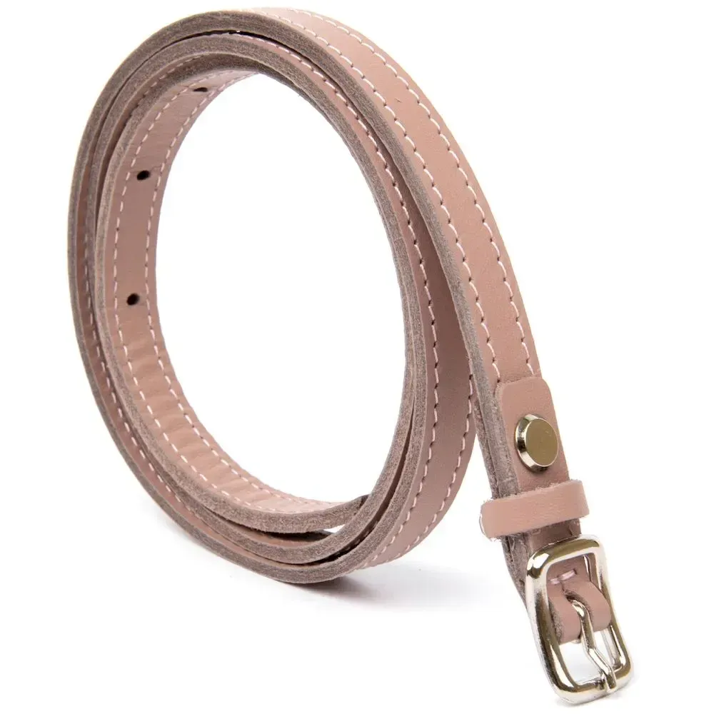 Тонкий жіночий ремінь під штани, сукню та ін. Виконаний із зносостійкої натуральної шкіри високої якості. Має ніжний рожевий колір, який не сильно впадає у вічі і дуже схожий на бежевий з рожевиною.