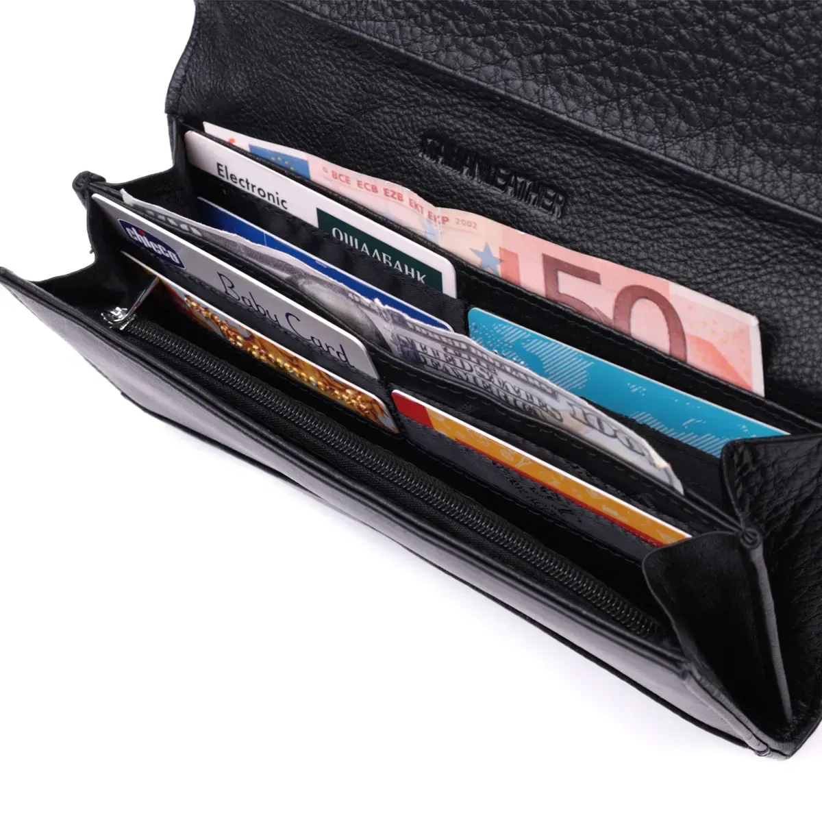 Шкіряний жіночий гаманець з геометричним клапаном ST Leather 22546 Чорний
