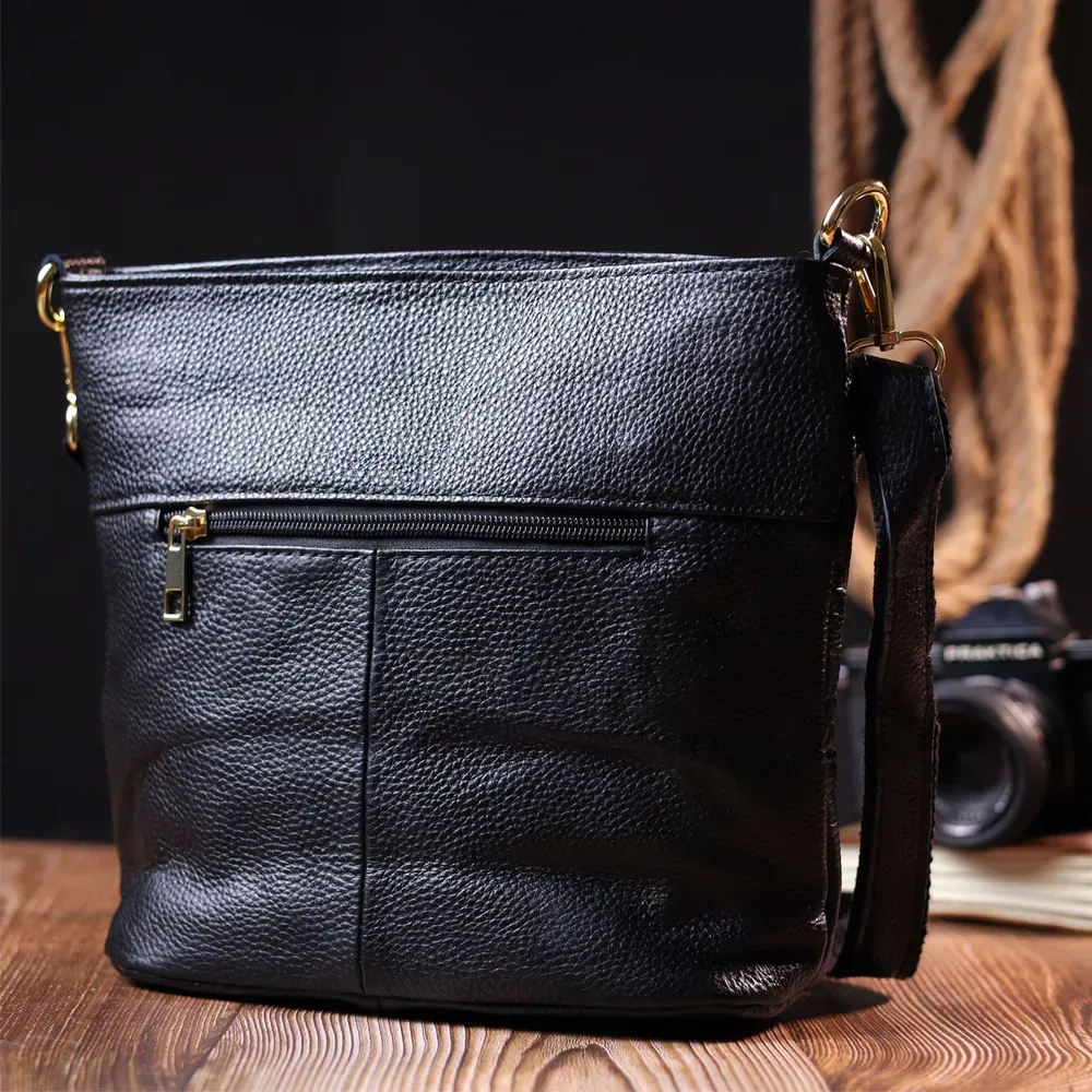 Красива жіноча сумка на плече Vintage 15002 шкіряна Чорний