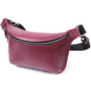 Жіноча поясна сумка з люксової натуральної шкіри в красивому темно-рожевому кольорі. Складається модель з одного просторого відділення, в якому знаходиться кишеня відкритого типу та кишені на тильній стороні зовні. Вона виглядає дуже сучасно, завдяки красиво підібраній фурнітурі кольору срібла, елегантним рівним рядкам та якісній шкірі, що переливається на сонці. Ідеальний подарунок для близької людини. Сумочка упакована у якісний фірмовий повстяний чохол.