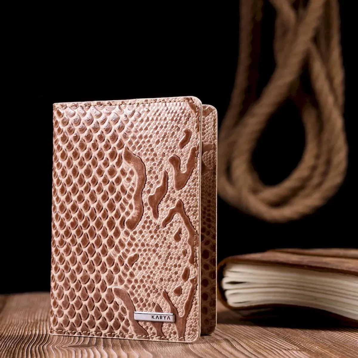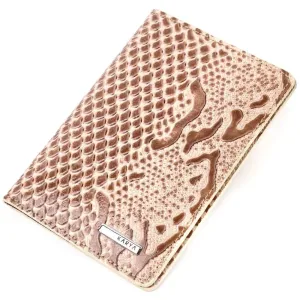 Красива обкладинка на паспорт із фактурної шкіри під кобру KARYA 20920 Молочний