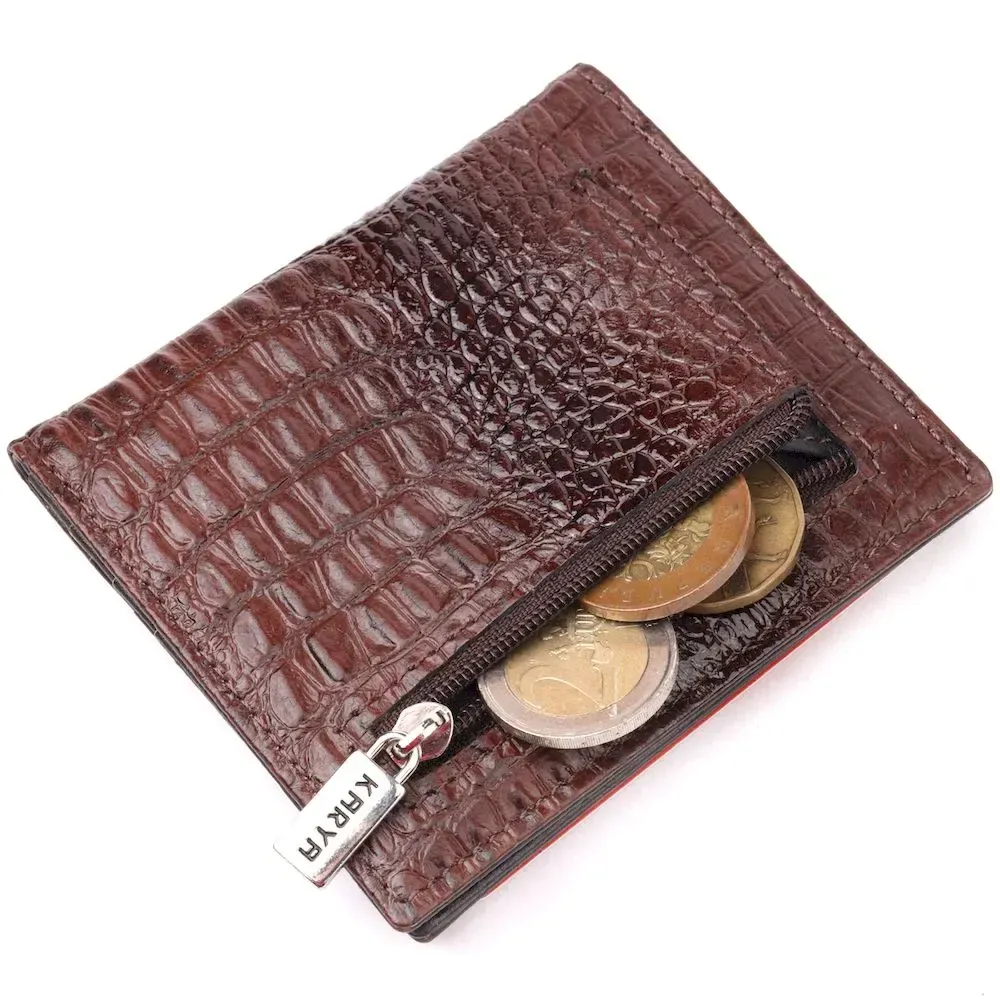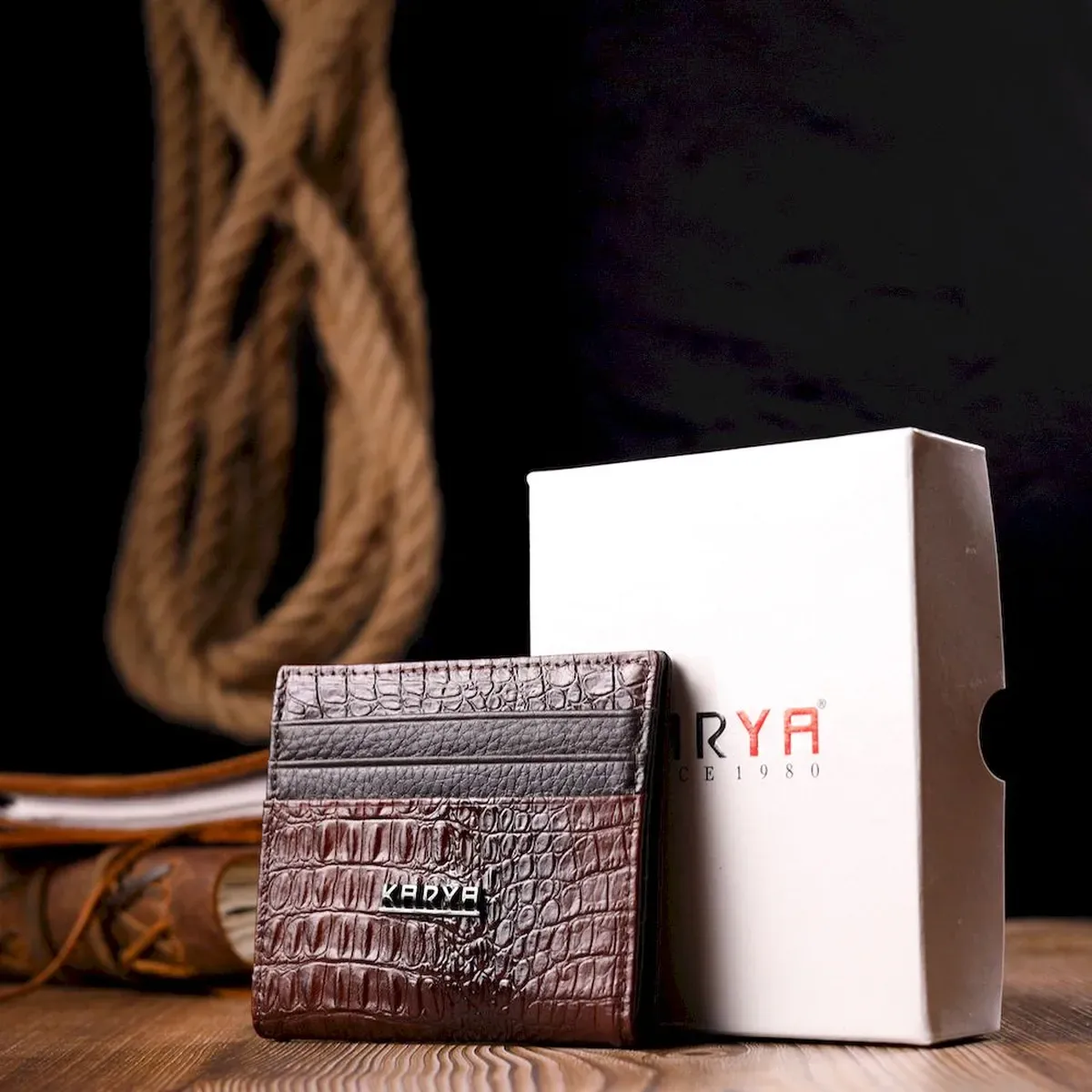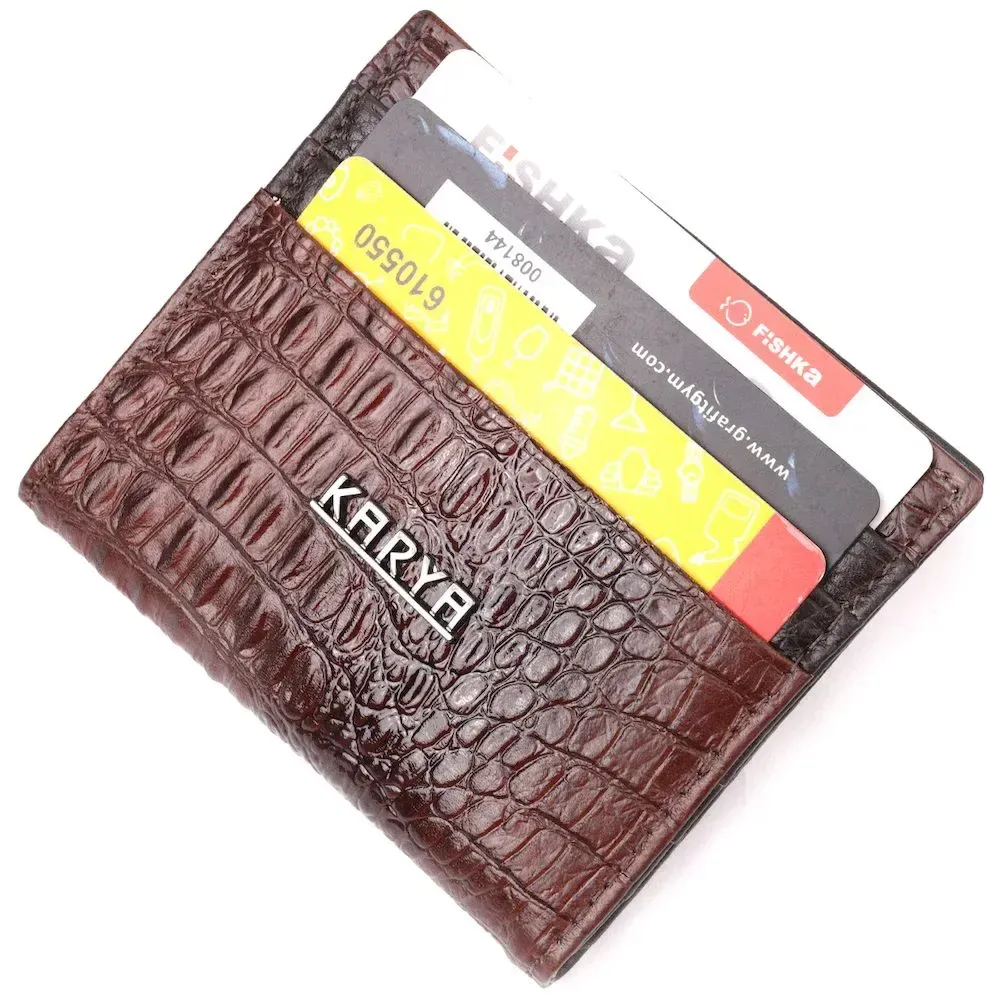 Красива візитниця з натуральної фактурної шкіри KARYA 20994 Коричневий