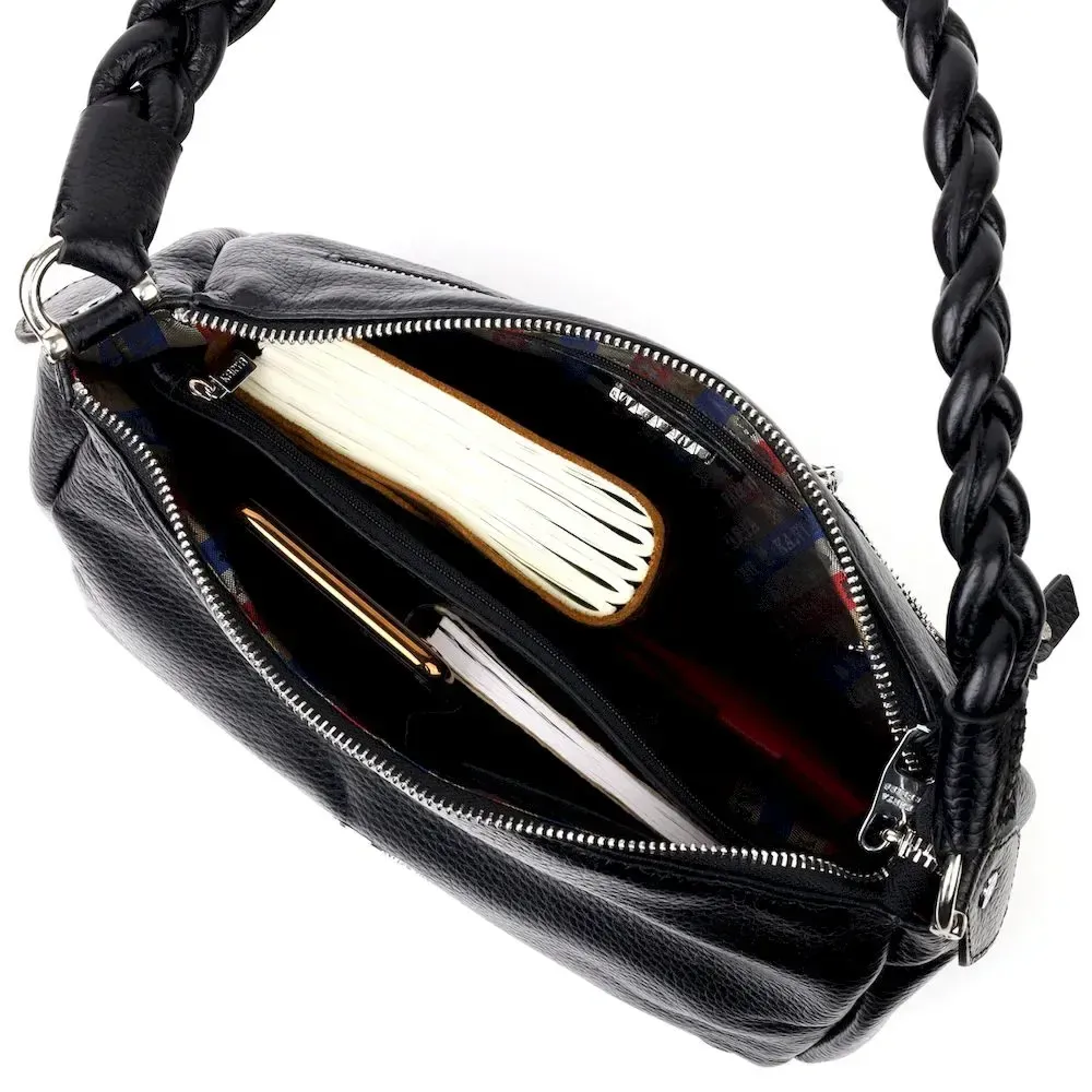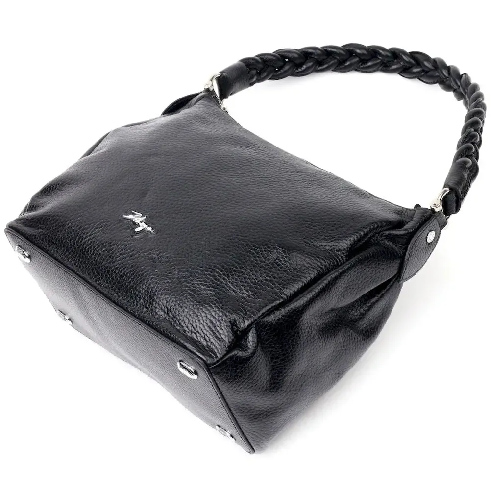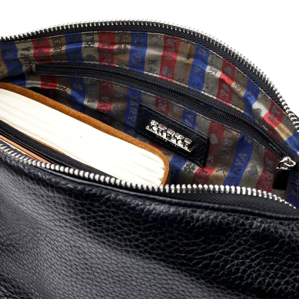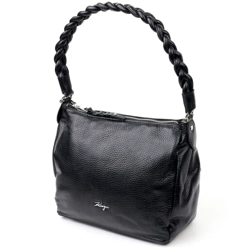 Приваблива сумка жіноча з дрібнозернистої натуральної шкіри, в класичному чорному кольорі. Сумка функціональна та зручна в експлуатації, якісна фурнітура не тільки доповнює стильний дизайн сумки, але й захищає виріб. Виріб має міцну підкладку. Аксесуар упакований у фірмовий текстильний мішок Karya. Сумка з натуральної шкіри завжди буде чудовим подарунком будь-якій жінці.