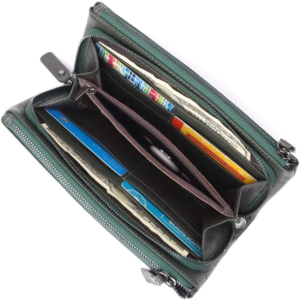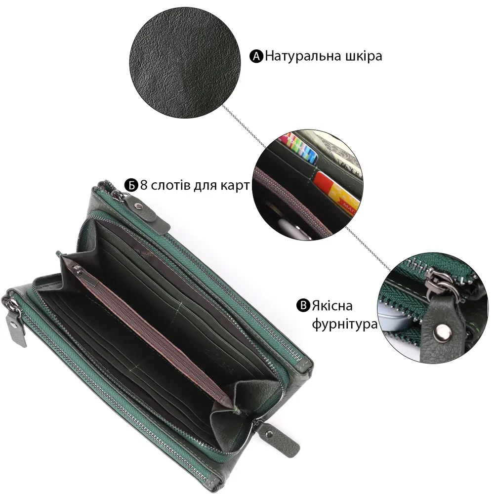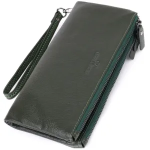 Красивий шкіряний гаманець на три відділення ST Leather 23110 Зелений