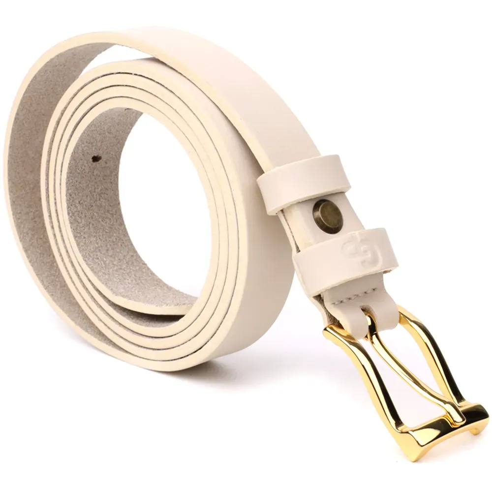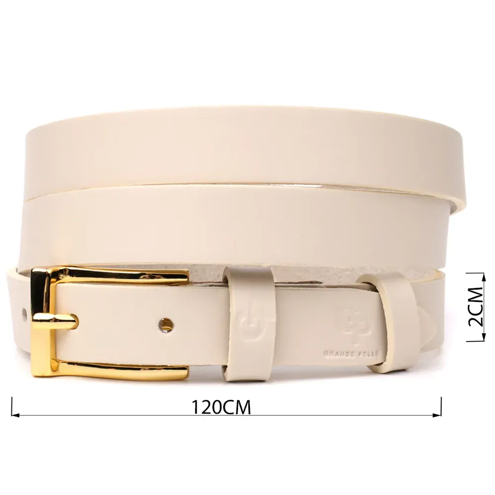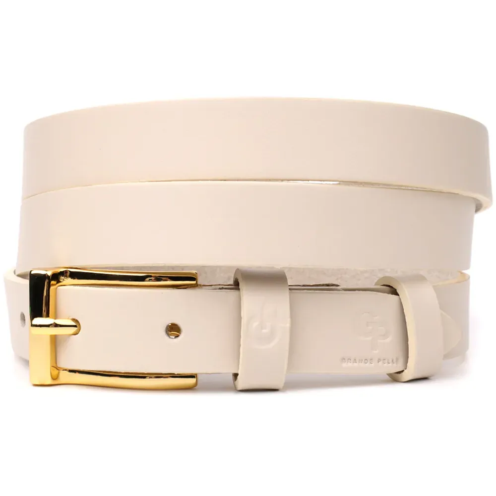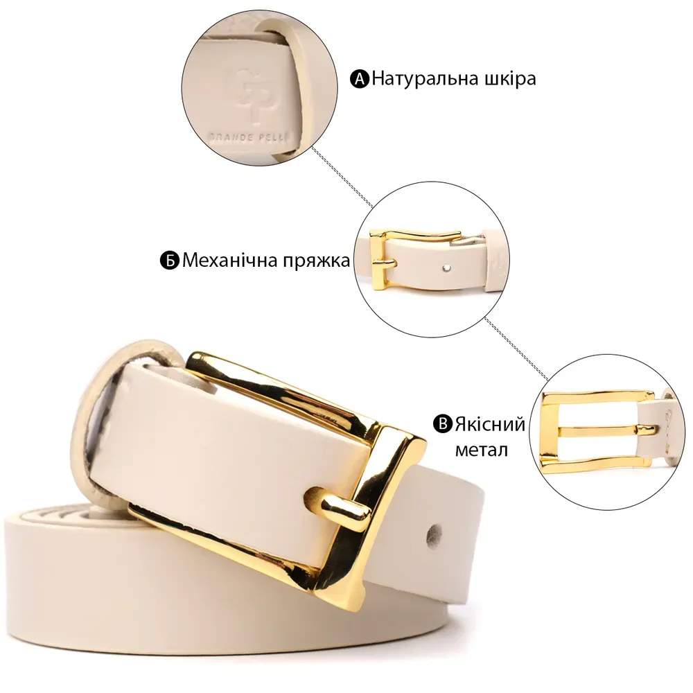 Красивий тонкий шкіряний ремінь для жінок GRANDE PELLE 22949 Молочний