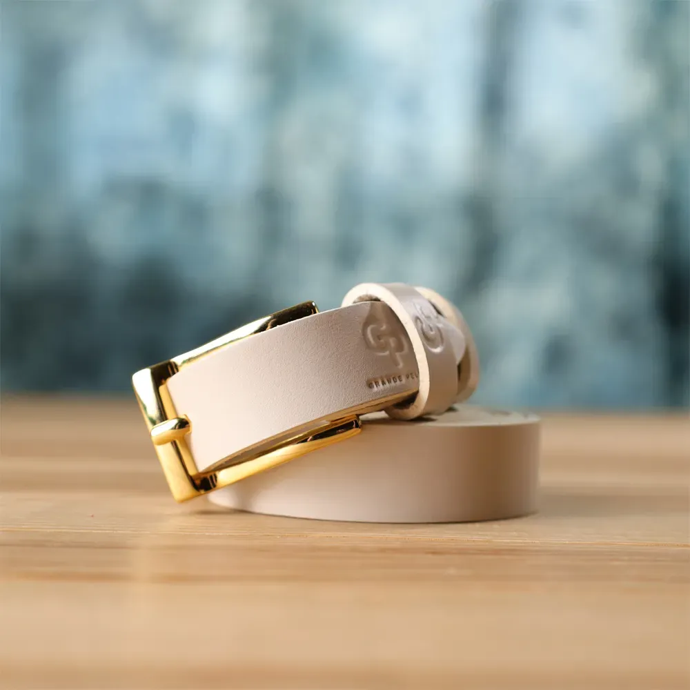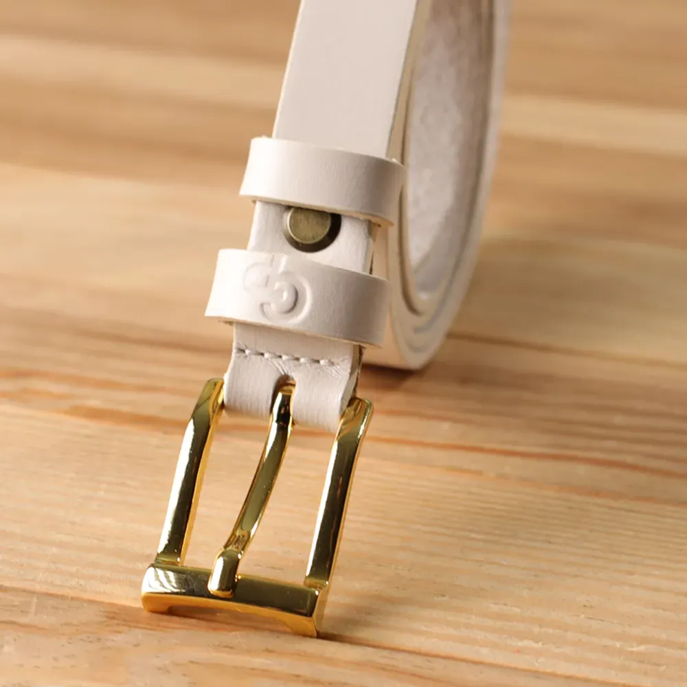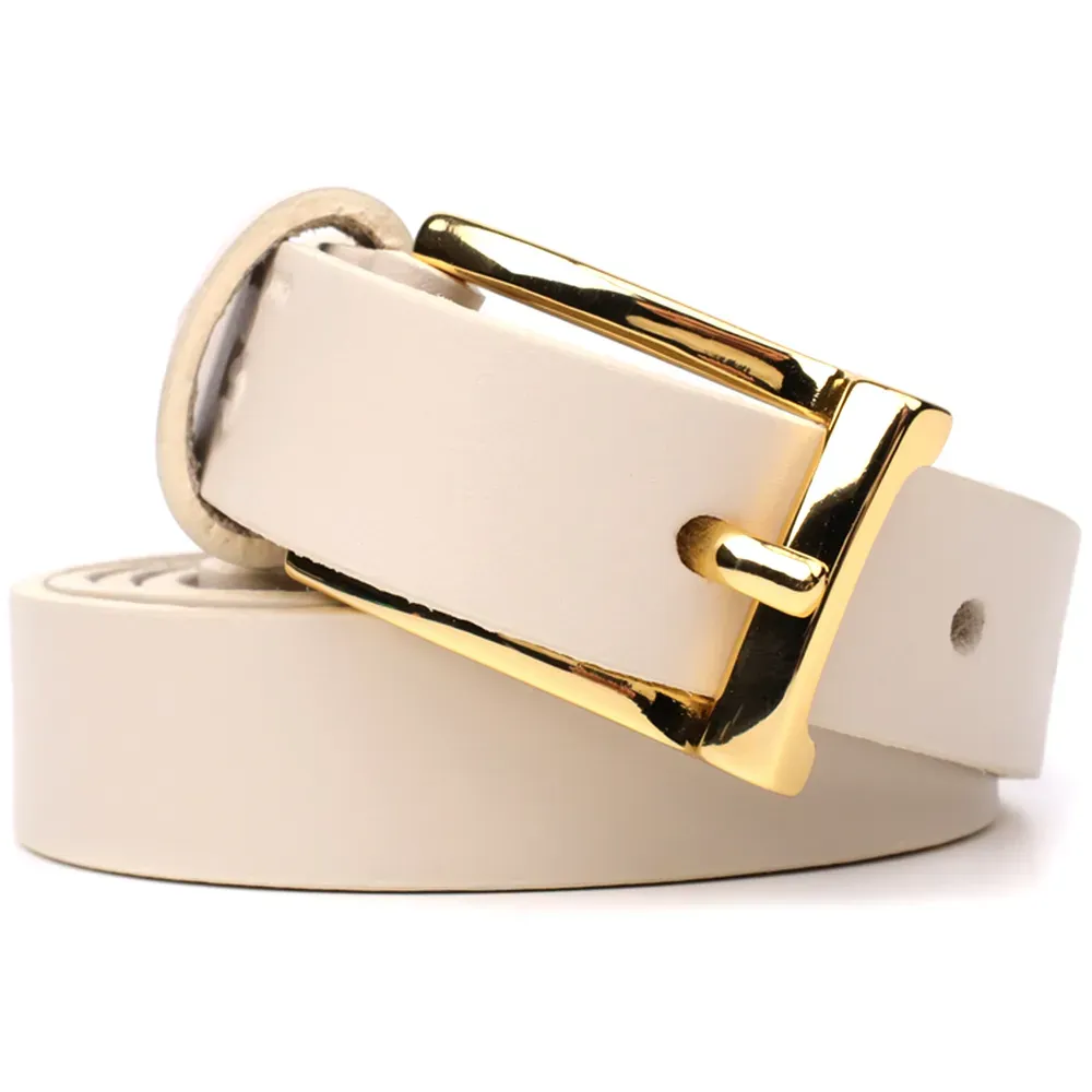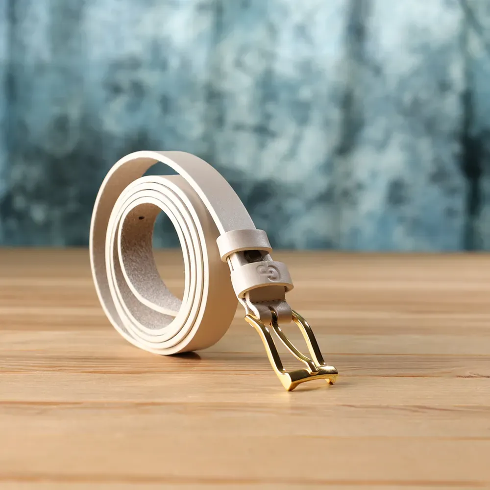 Красивий тонкий шкіряний ремінь для жінок GRANDE PELLE 22949 Молочний