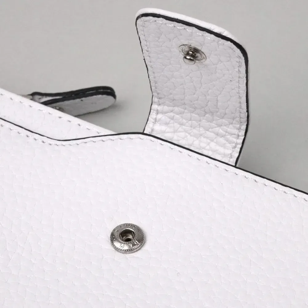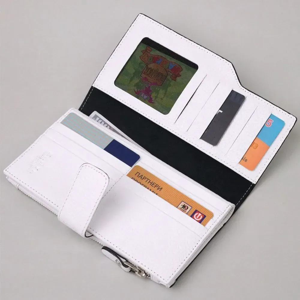 Гарний жіночий гаманець з натуральної шкіри в білому з чорною окантовкою кольорі. Усередині представлено безліч кишень, у яких можна зручно розкласти купюри, пластикові картки та документи. Такий гаманець з натуральної шкіри - це ідеальний варіант для тих, хто цінує якість, зручність та комфорт.