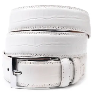 Красивий ремінь брючний з натуральної шкіри з тисненням під крокодила KARYA 21393 Білий