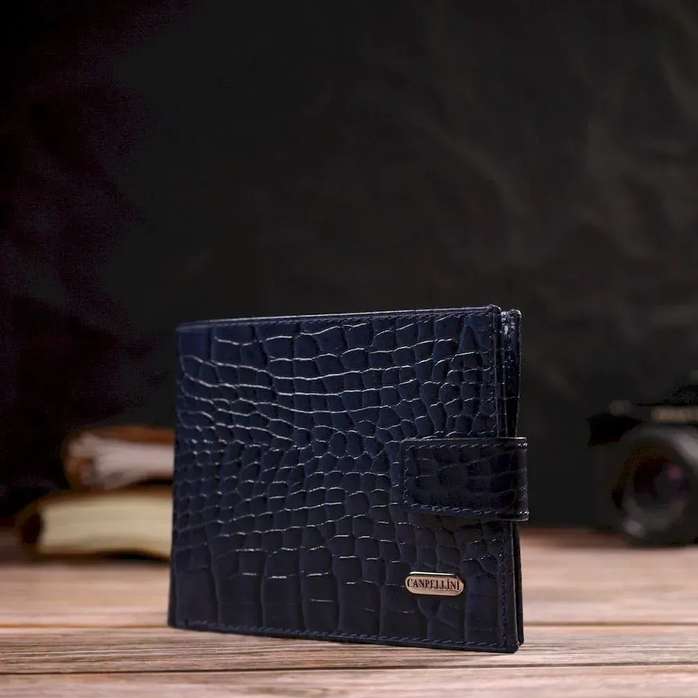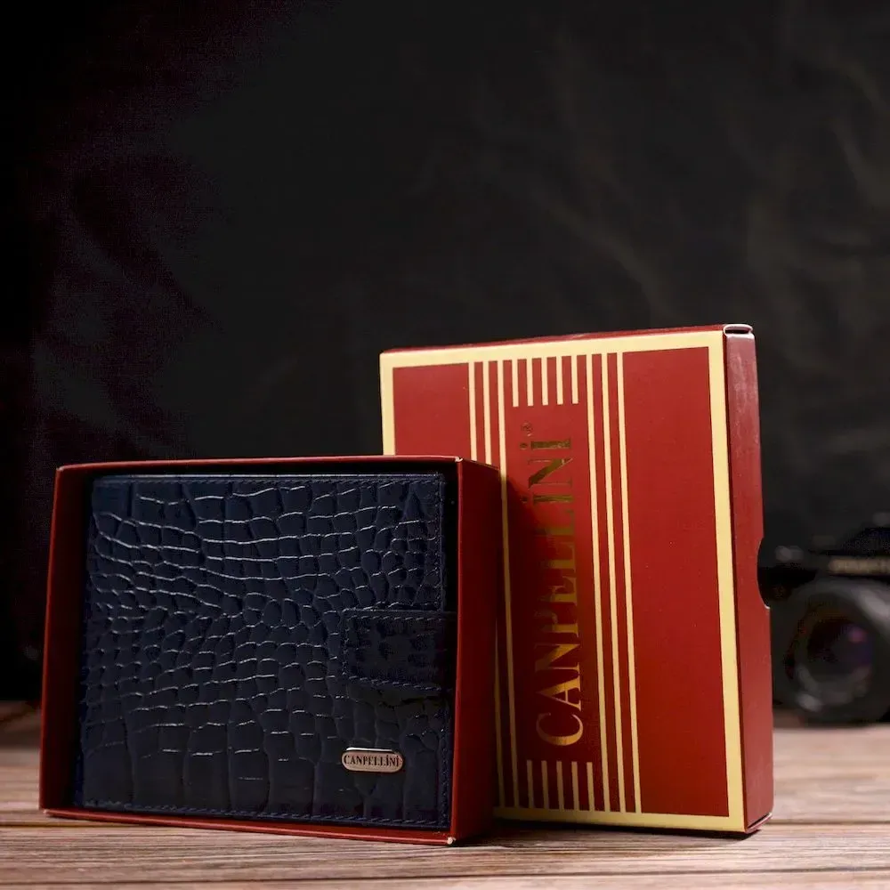 Гарний горизонтальний гаманець для чоловіків з натуральної шкіри з тисненням під рептилію CANPELLINI 21889