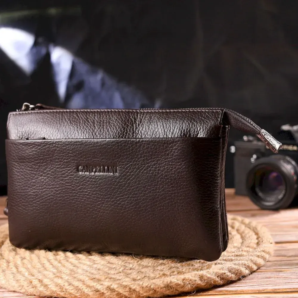Красивий клатч для чоловіків з натуральної зернистої шкіри CANPELLINI 21553 Коричневий