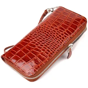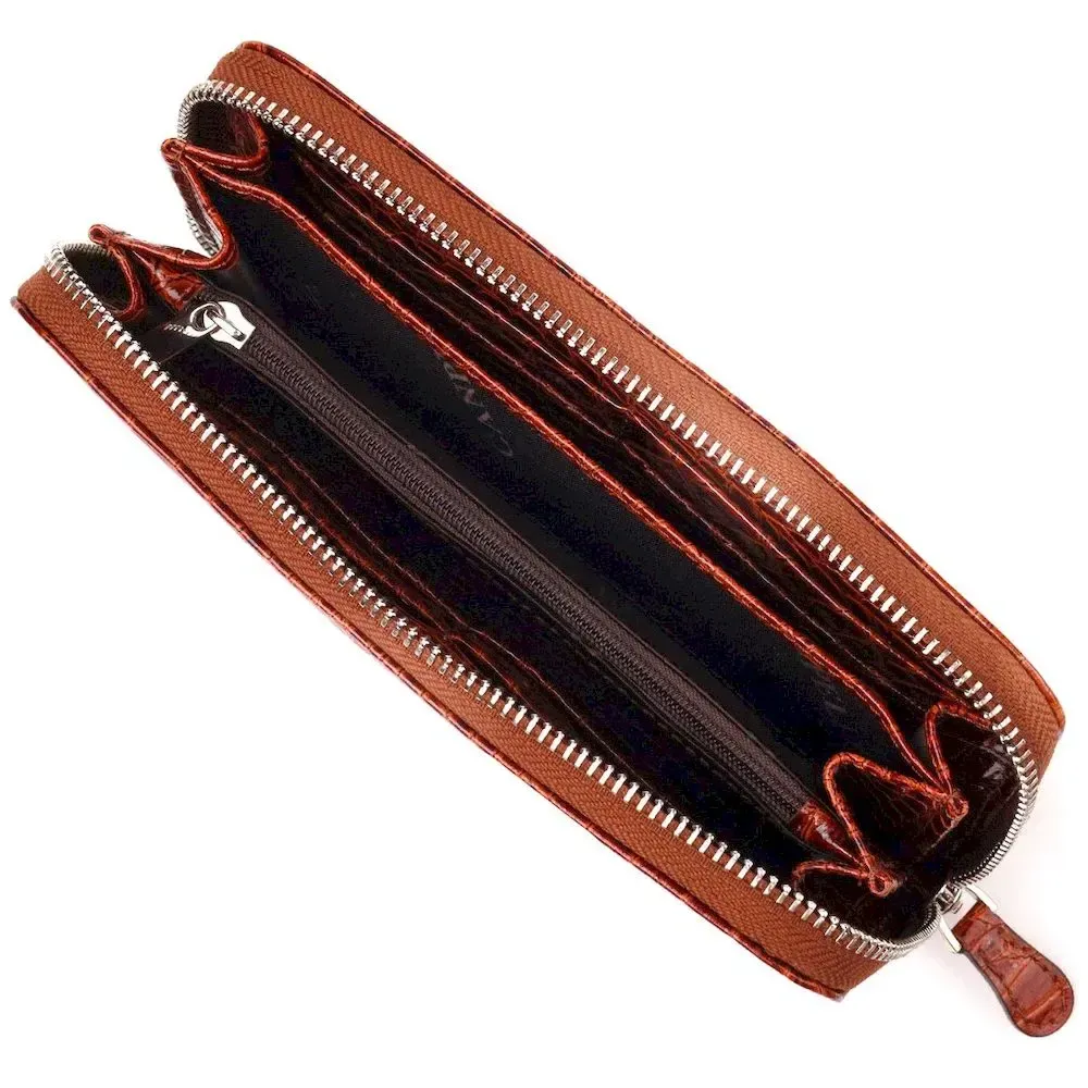 Гарний гаманець для жінок із натуральної фактурної шкіри під крокодила CANPELLINI 21620 Коньячний