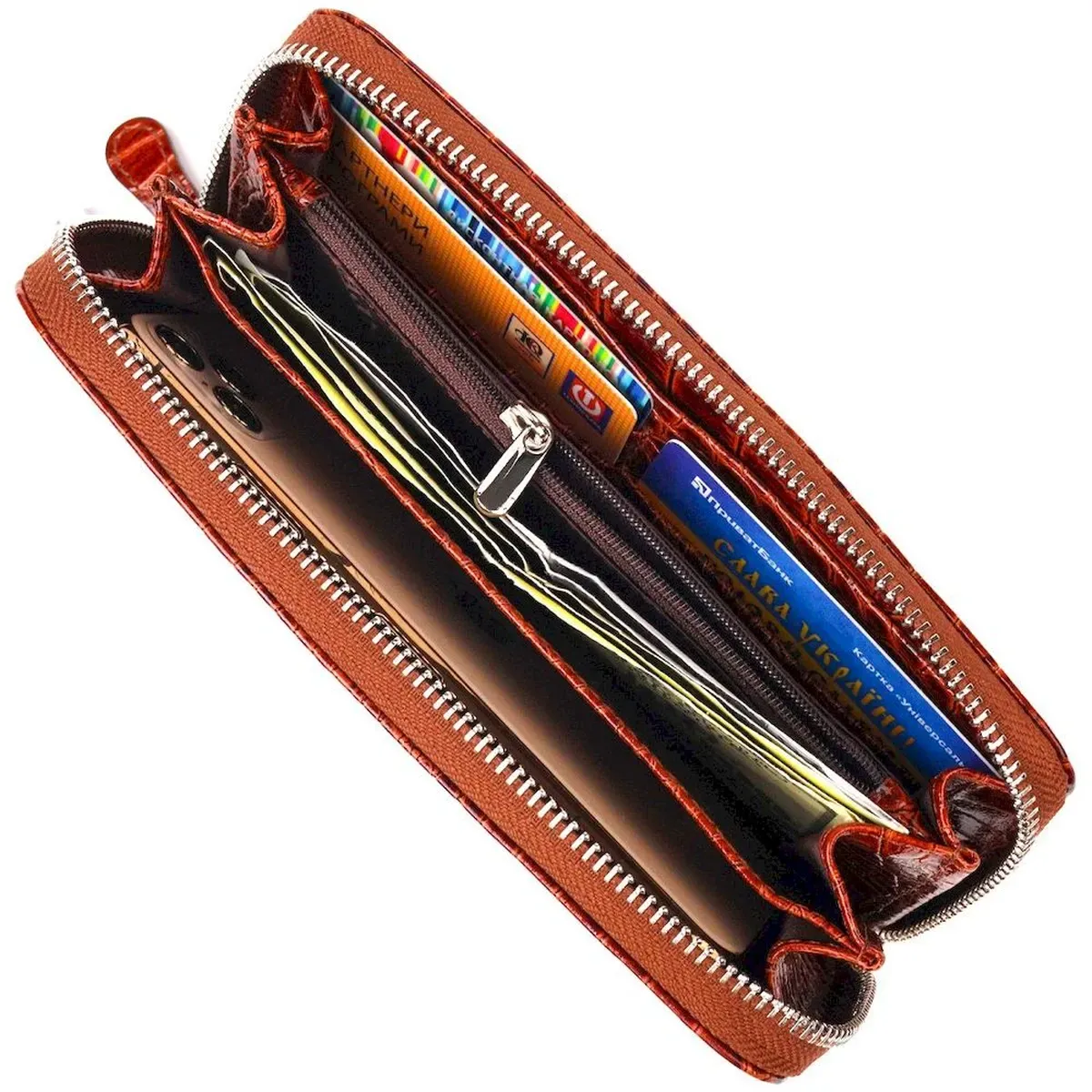 - 3 основні відділення для купюр з двома перегородками, одна з них на блискавці;