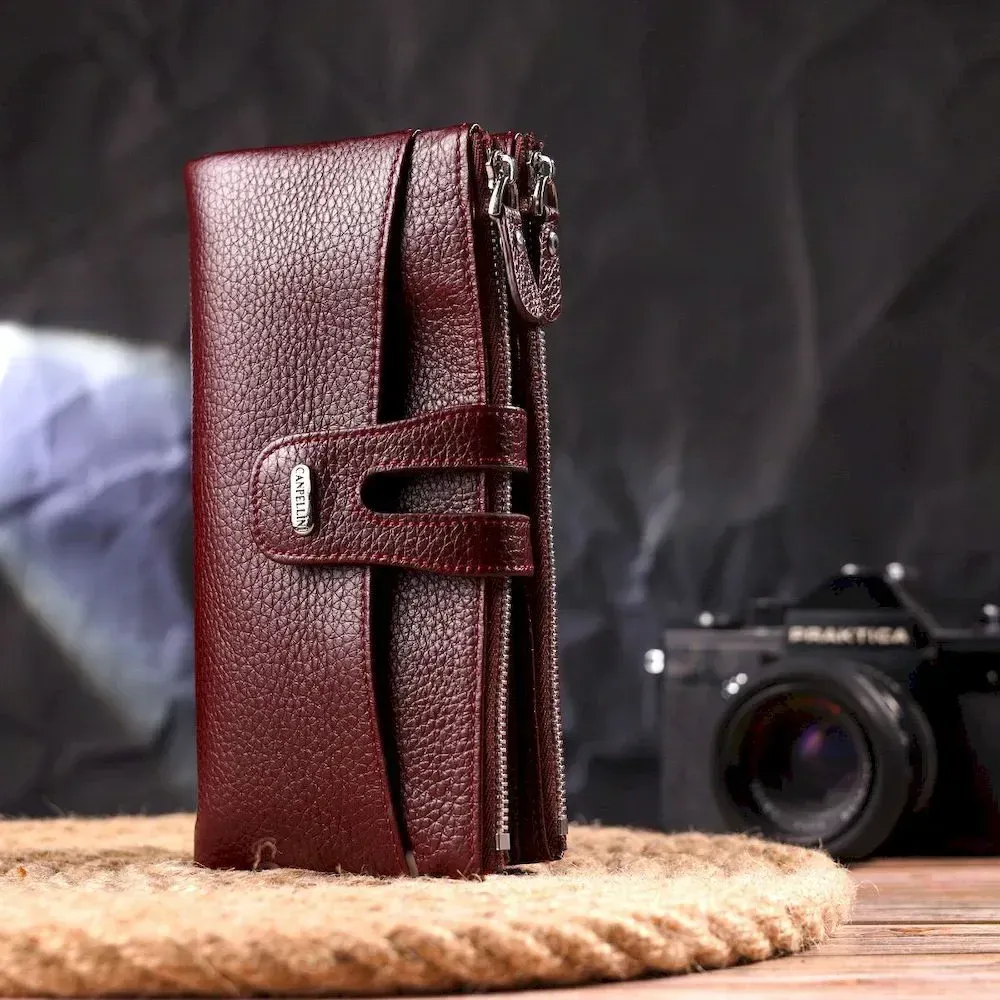 Гарний гаманець із натуральної зернистої шкіри CANPELLINI 21636 Бордовий