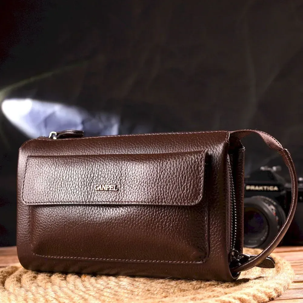 Красивий чоловічий клатч із натуральної зернистої шкіри CANPELLINI 21559 Коричневий