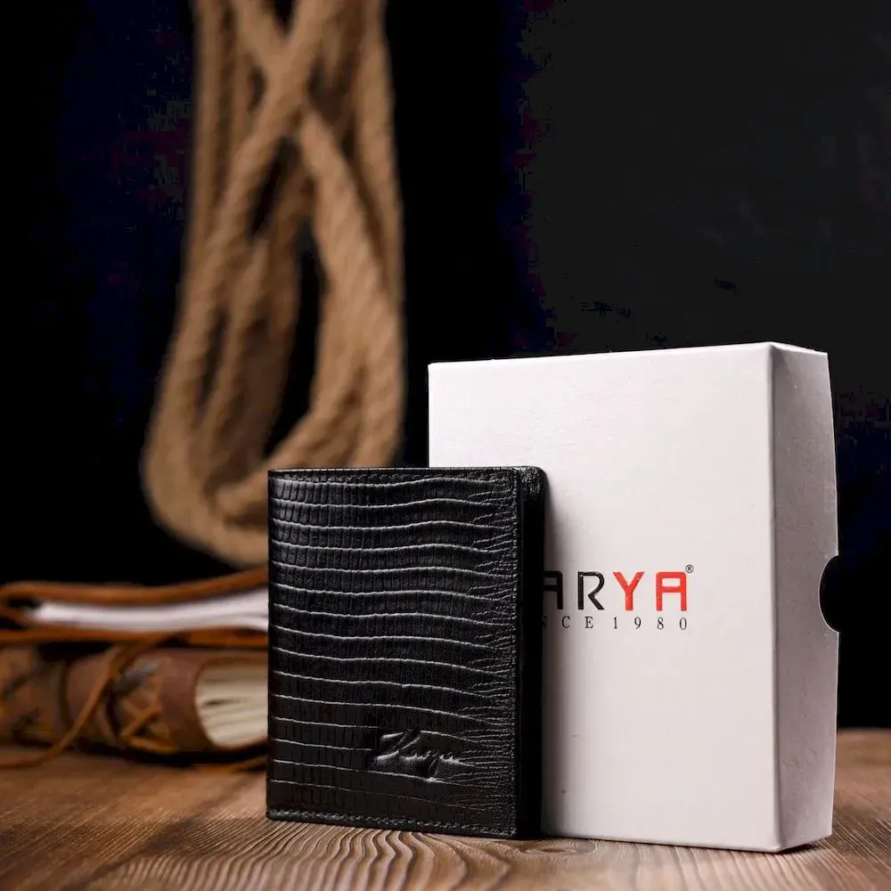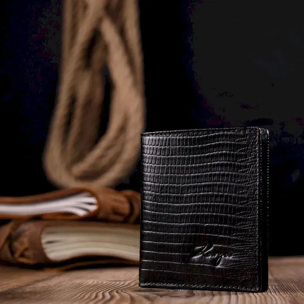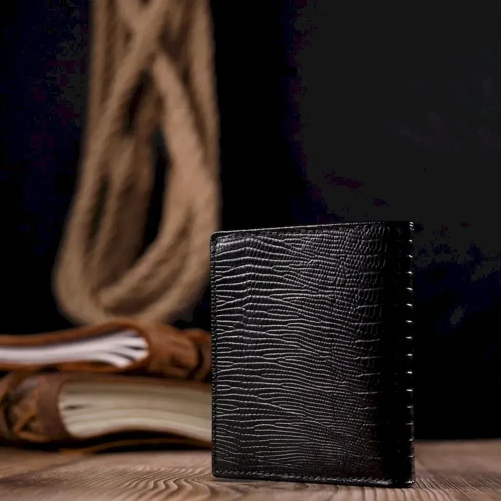 Красивий чоловічий гаманець із фактурної шкіри під рептилію KARYA 21059 Чорний