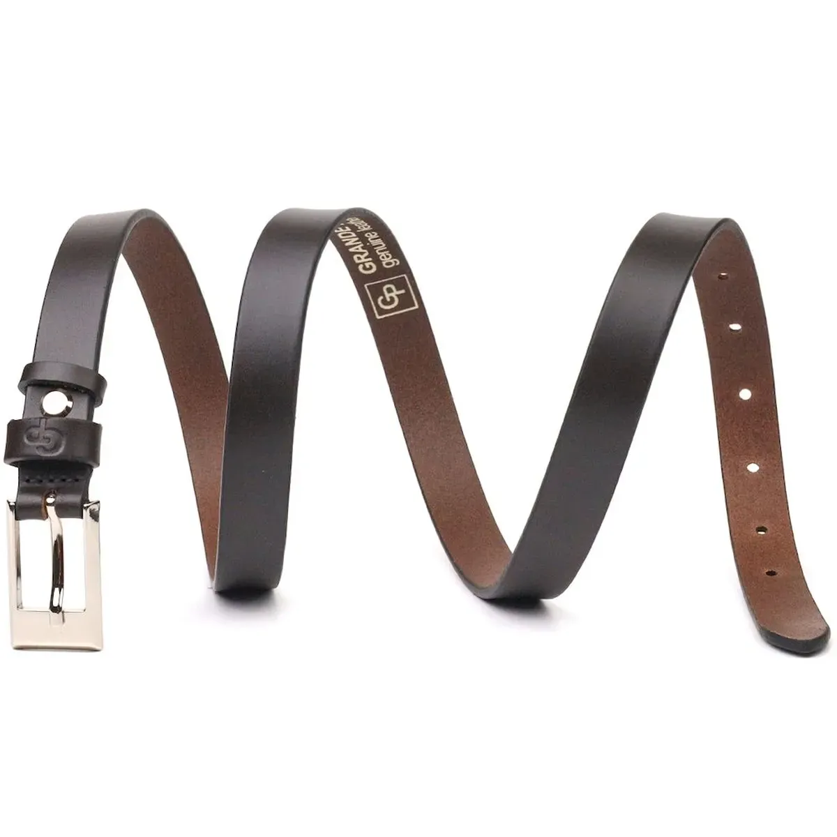 Якісний жіночий ремінь із високоякісної італійської шкіри, в красивому коричневому кольорі. Аксесуар буде відмінно поєднуватись, як зі штанами, так і з сукнею, блузкою або тунікою. Пряжка виконана з якісної фурнітури, з гострими краями, дуже акуратна та стильна. Колір пряжки: срібло. Тиснення логотипу бренду додає виробу стилю, а також є запорукою якості та оригінальності продукції. Шкіряний ремінь буде завжди актуальним подарунком для себе, подруги чи колеги.