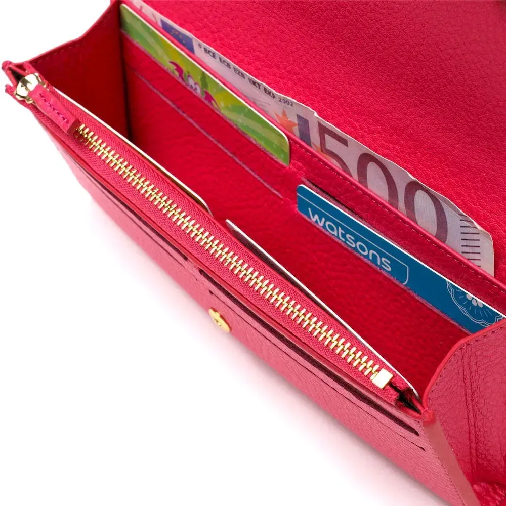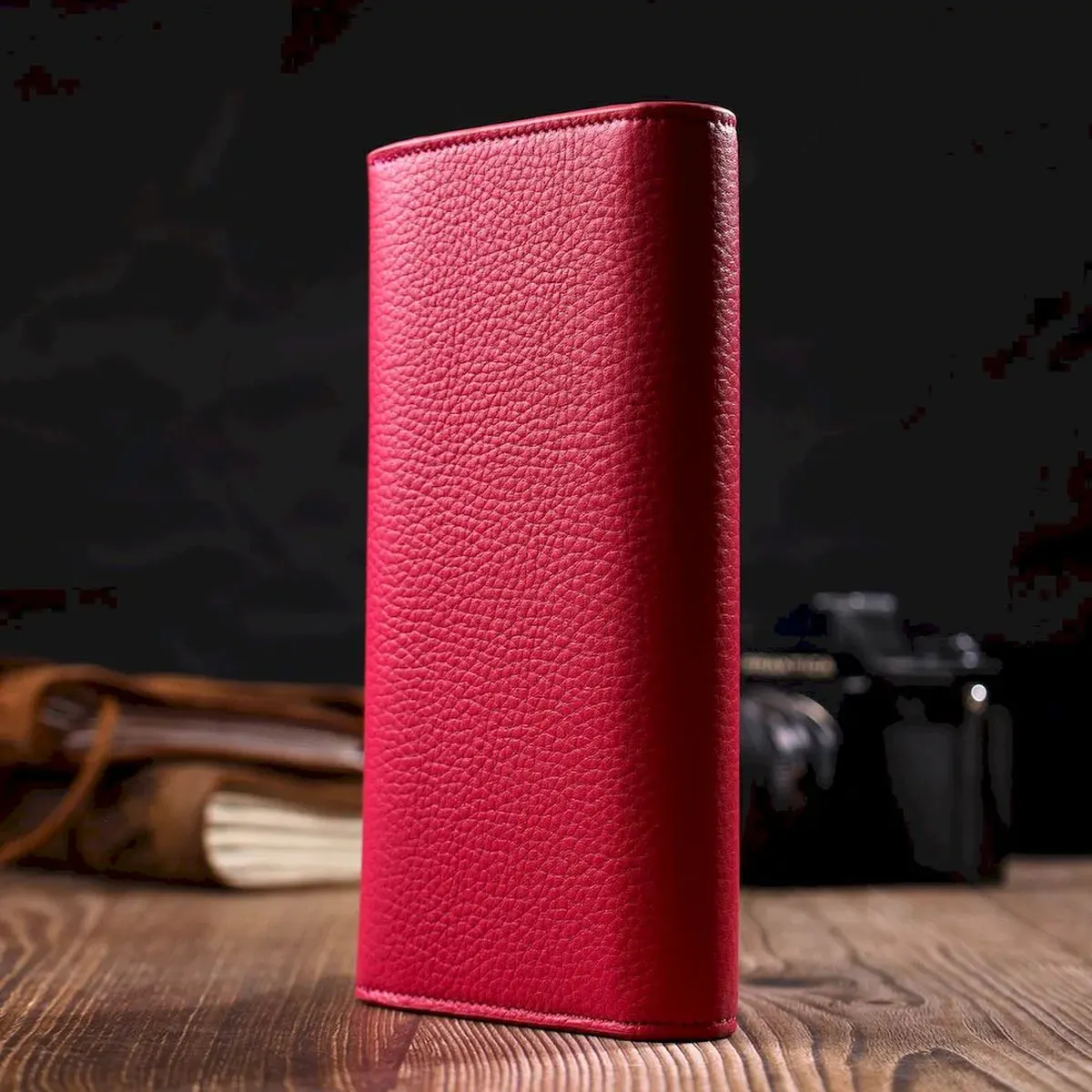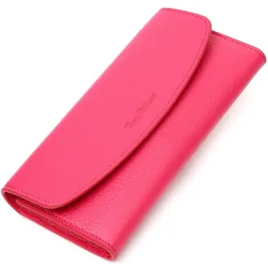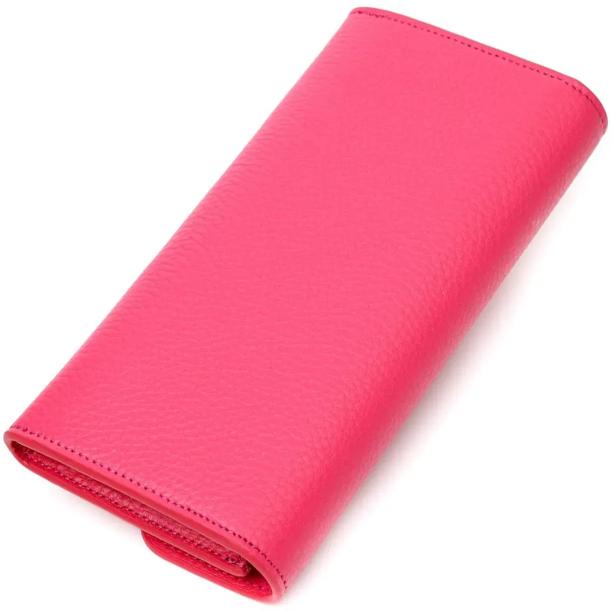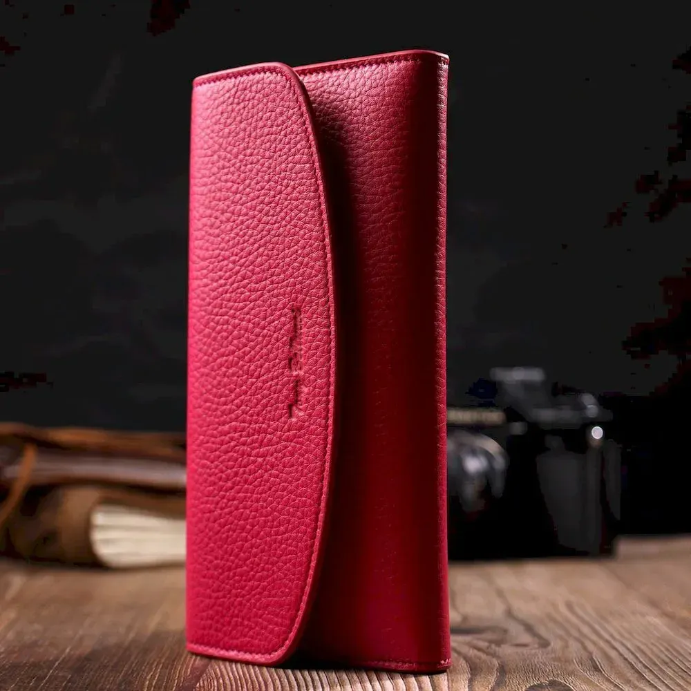 Незвичайно яскравого кольору жіночий гаманець з натуральної шкіри флотар, для якої характерна міцність , зносостійкість та зерниста фактура. Аксесуар складається з одного широкого відділення для купюр, дванадцяти осередків для пластикових карток, однієї прилеглої кишені та монетниці на блискавці. У виробі використано якісну фурнітуру золотистого кольору. Закривається гаманець клапаном на кнопку. Купуючи цей шкіряний гаманець, Ви не тільки набуваєте стильної речі, але й отримуєте якісний аксесуар, який прослужить не один рік.