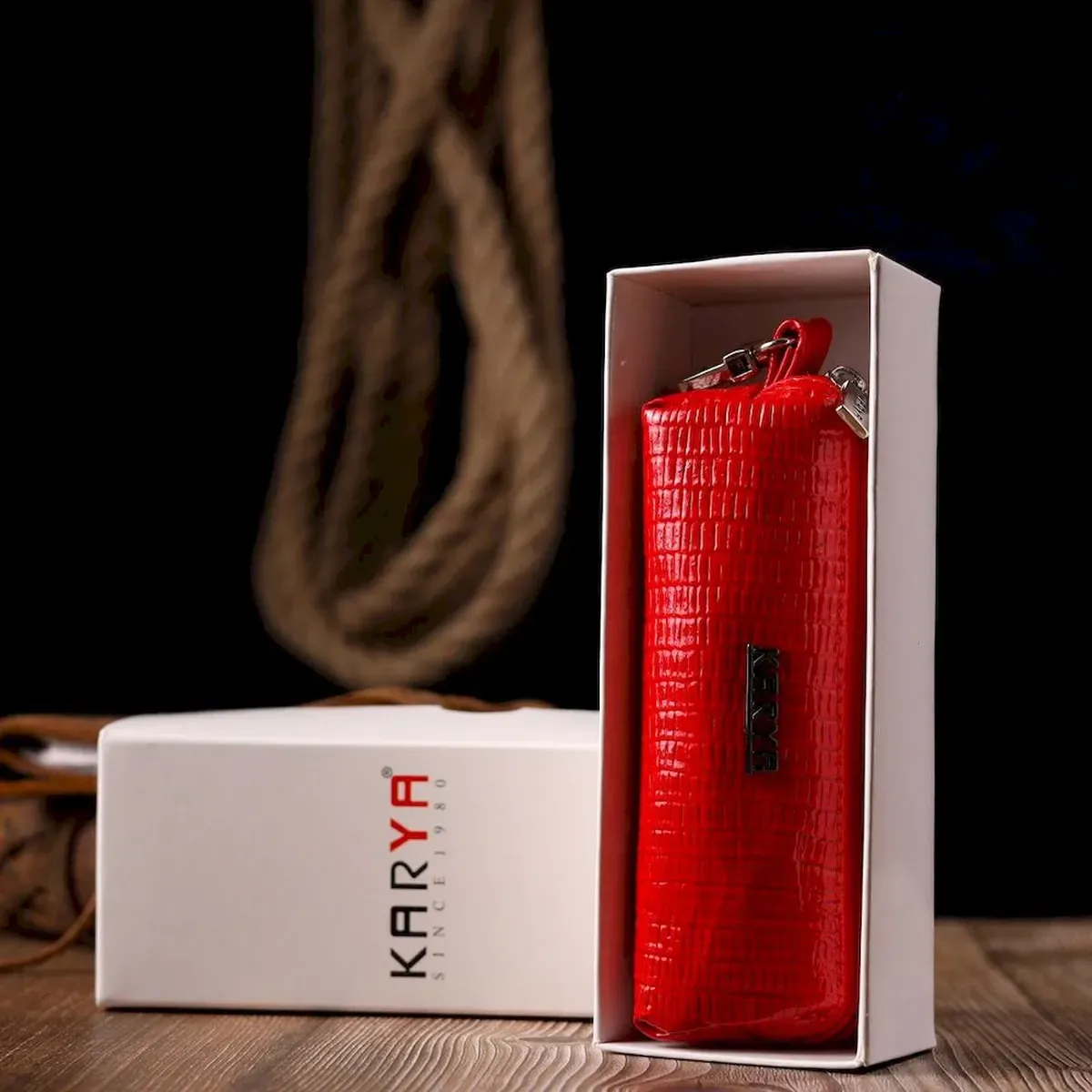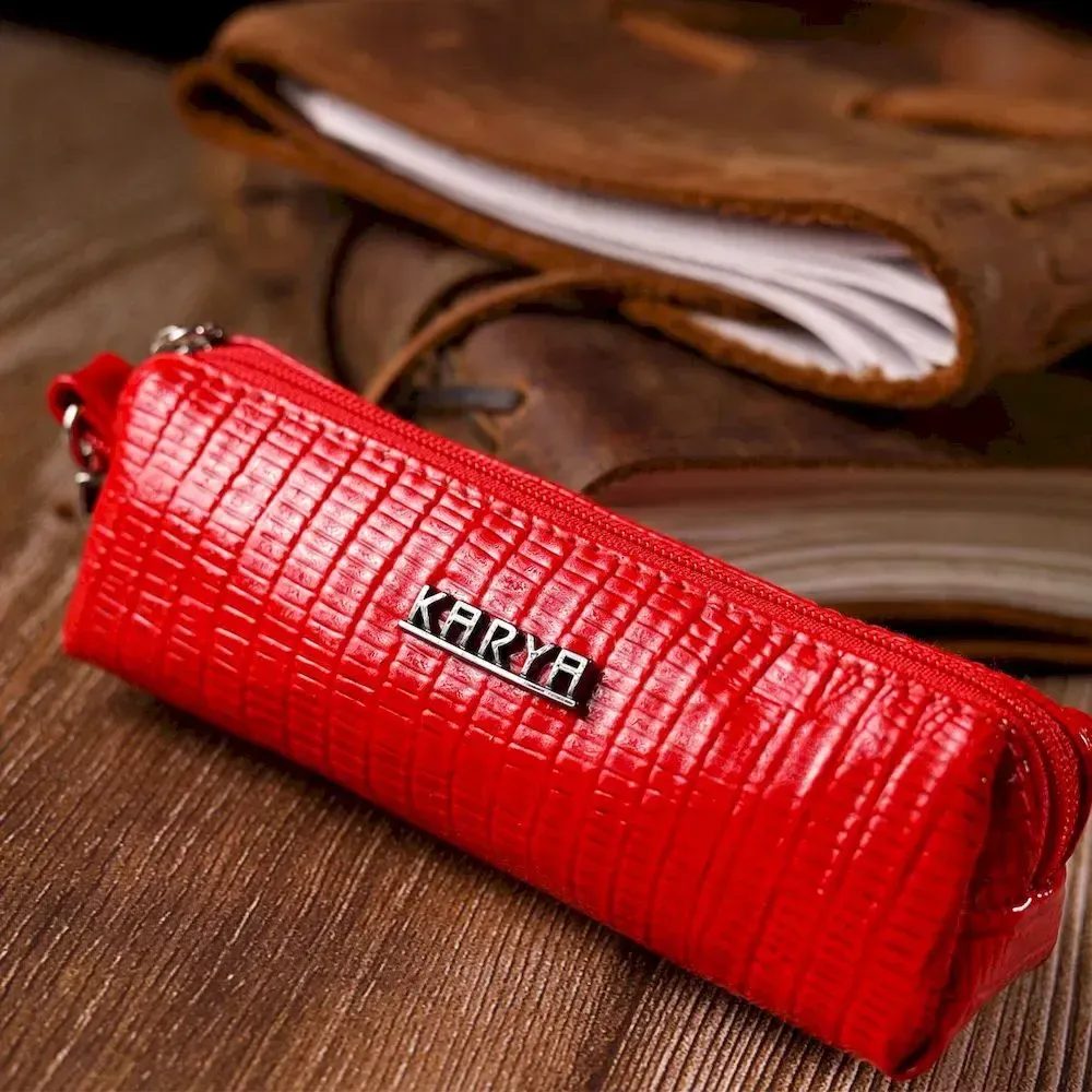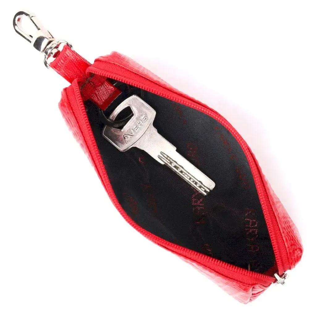 Лакована ключниця з натуральної фактурної шкіри KARYA 21220 Червоний