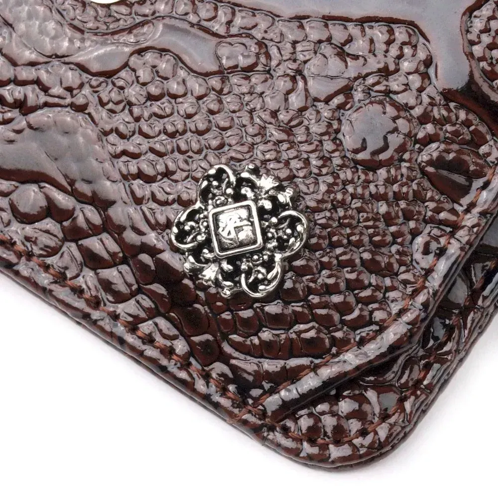 Лакована візитниця з натуральної фактурної шкіри KARYA 20956 Коричневий