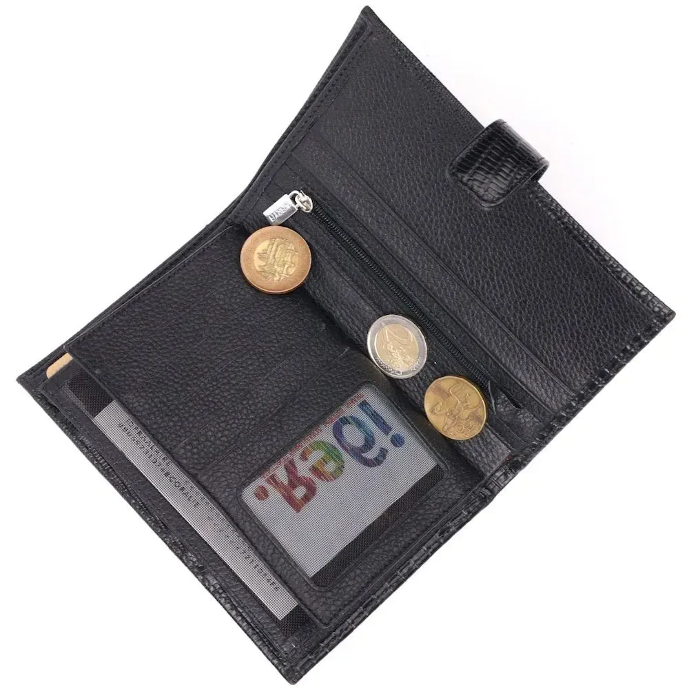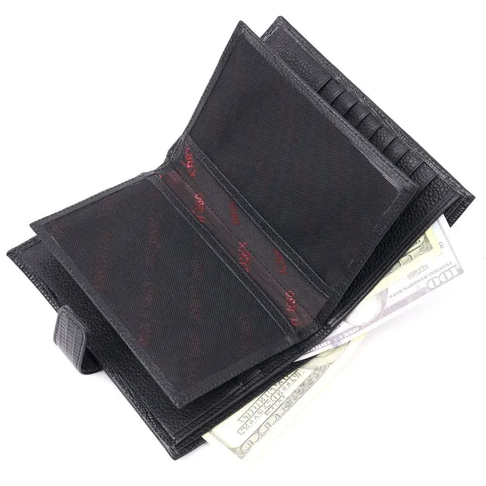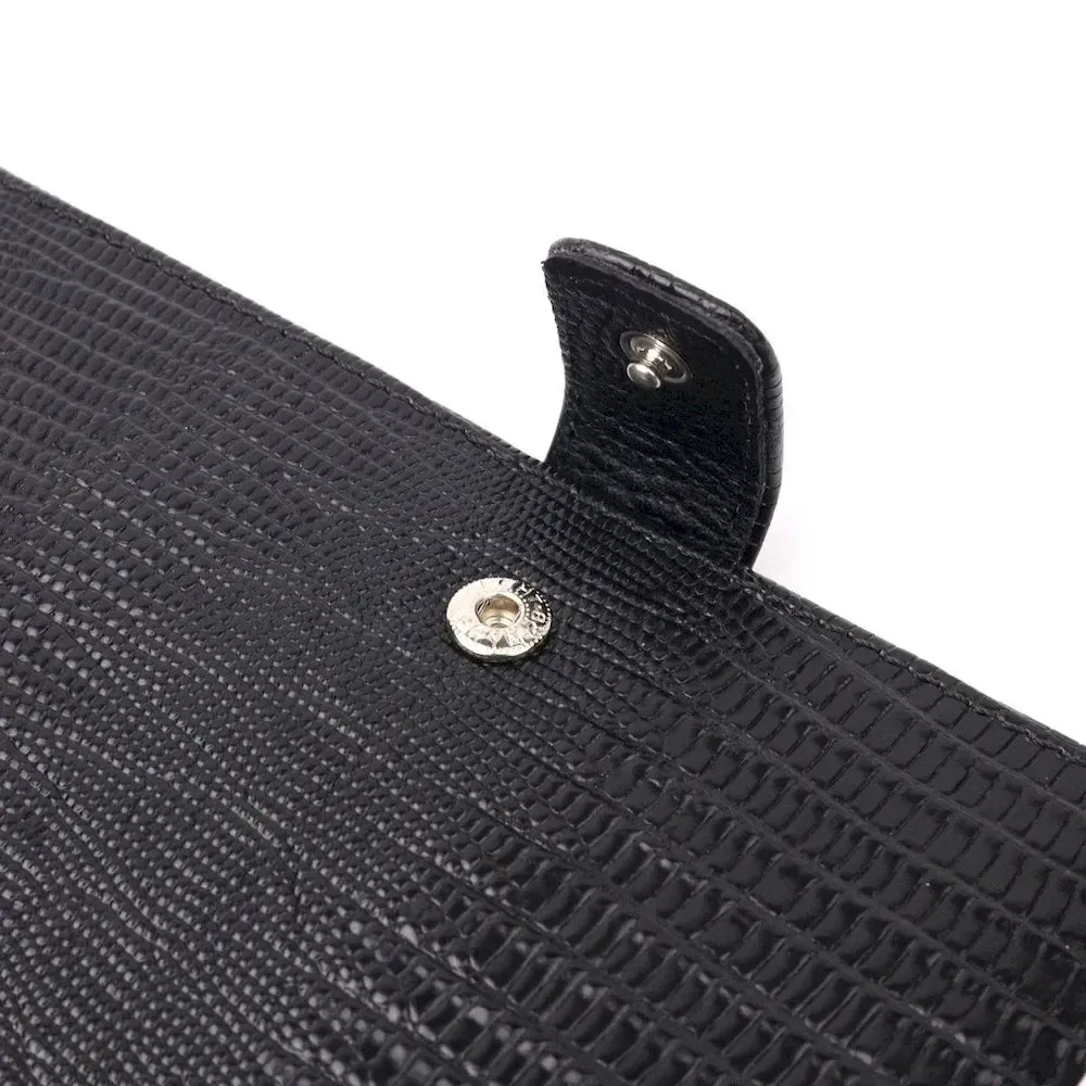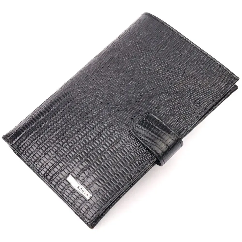 Лаковане чоловіче портмоне з хлястиком із натуральної фактурної шкіри KARYA 21191 Чорний