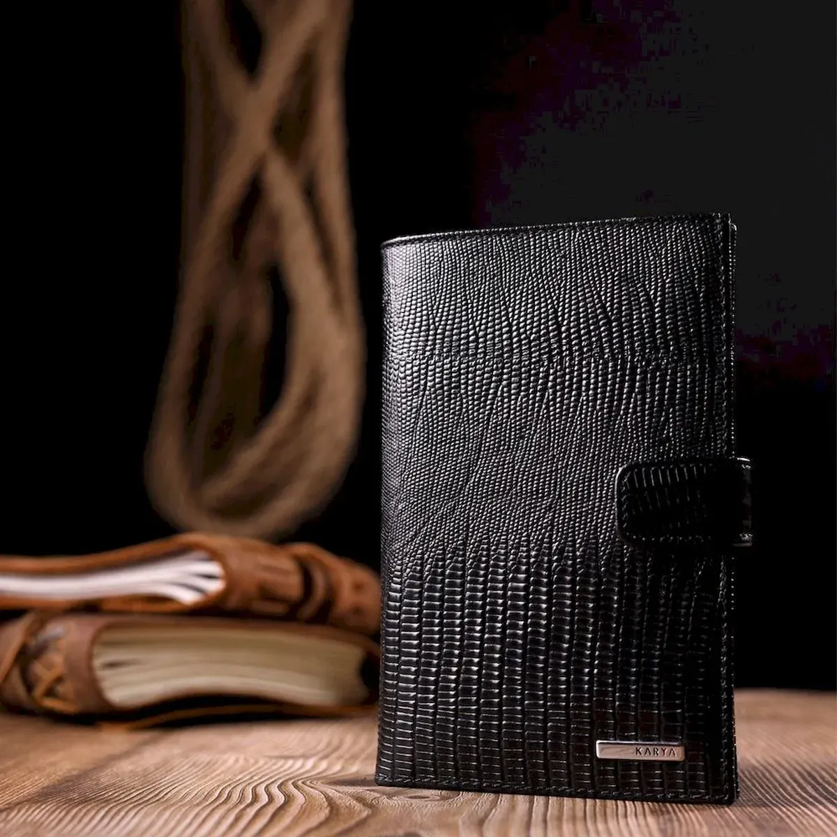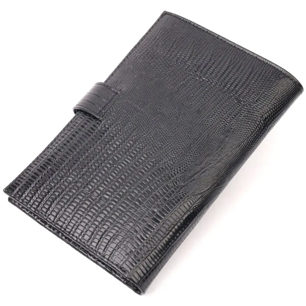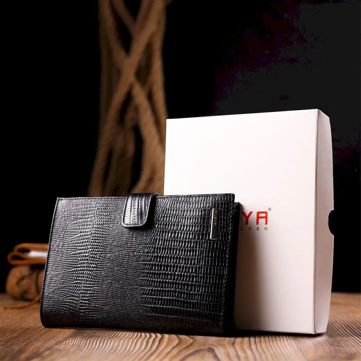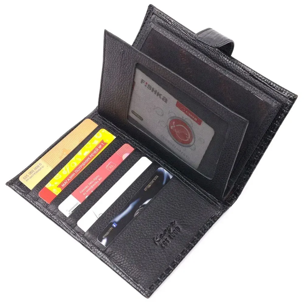 - виріб упакований у фірмову коробку. Місткий чоловічий гаманець з натуральної фактурної шкіри, з тисненням під рептилію. Модель вертикального типу складається наполовину і закривається хлястиком на кнопку. Короткий дизайн, відмінно лягає в руку, поміщається в будь-яку сумку. Аксесуар упакований у фірмову коробочку. Вироби з натуральної шкіри завжди будуть чудовим подарунком для близької людини.