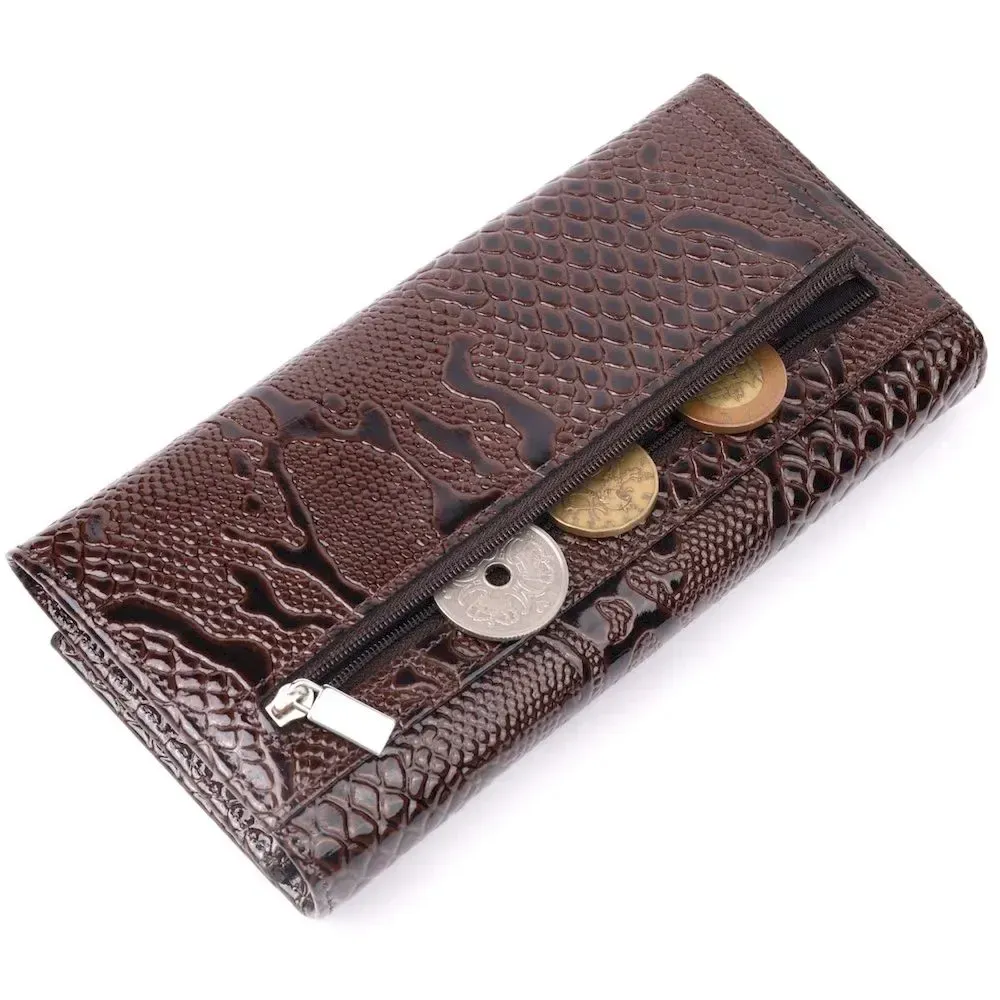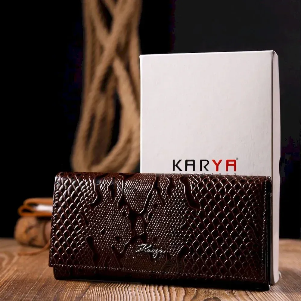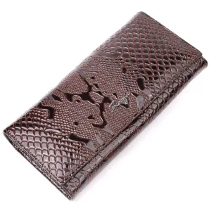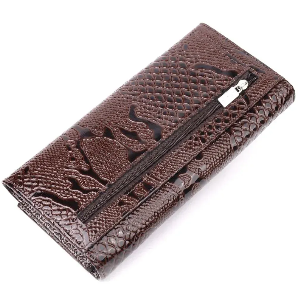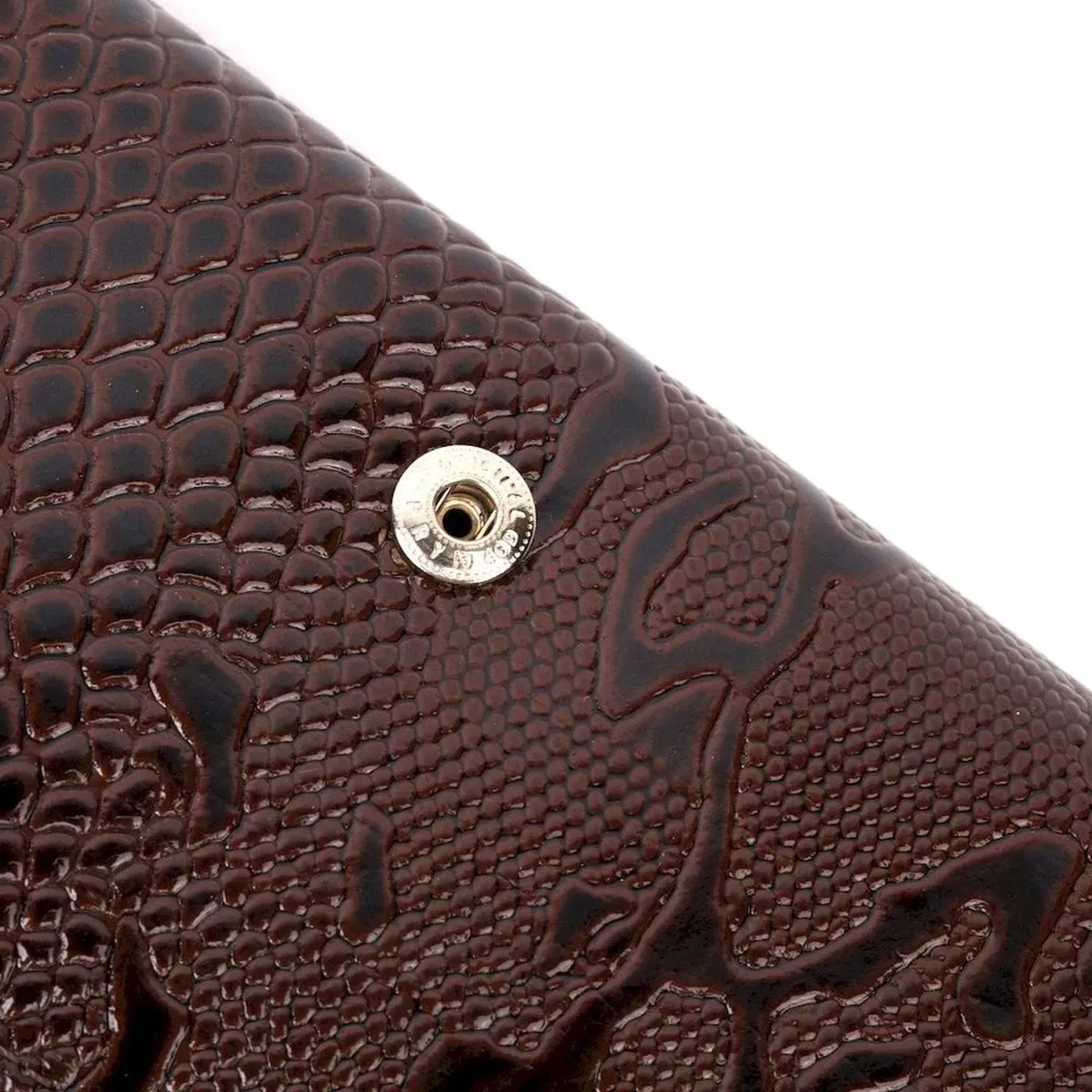 Лакований горизонтальний гаманець з натуральної шкіри з тисненням під змію KARYA 21170 Коричневий