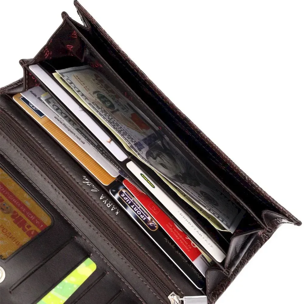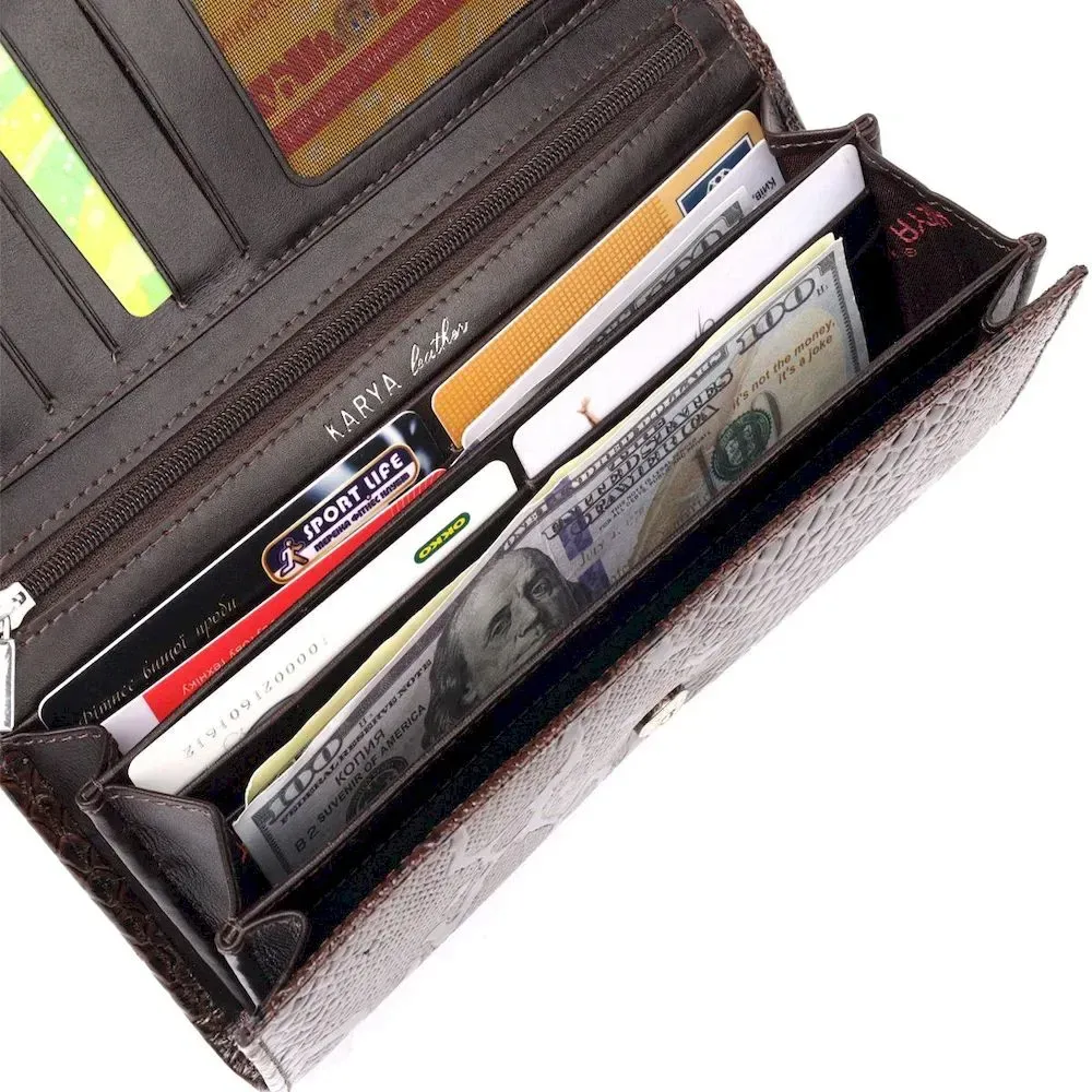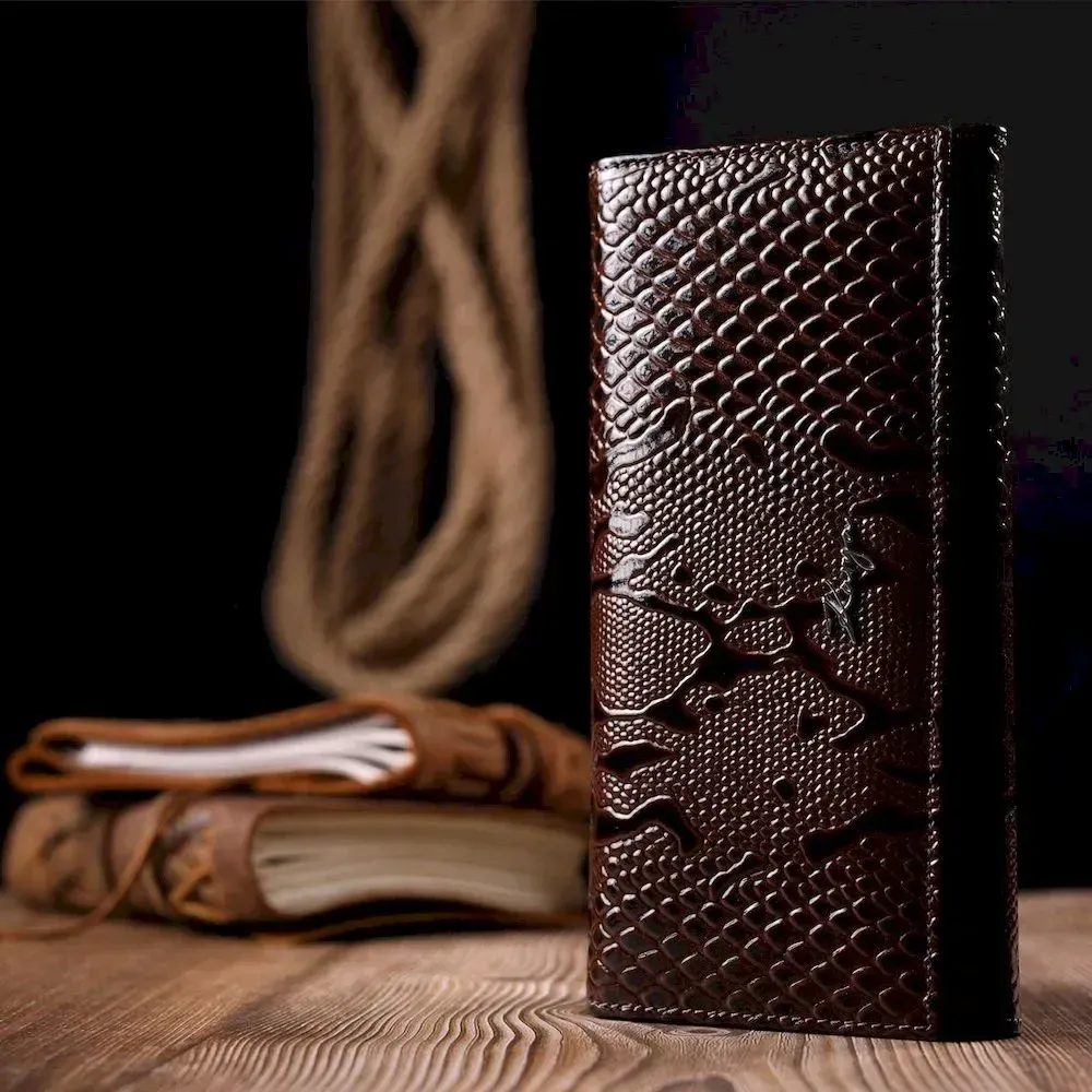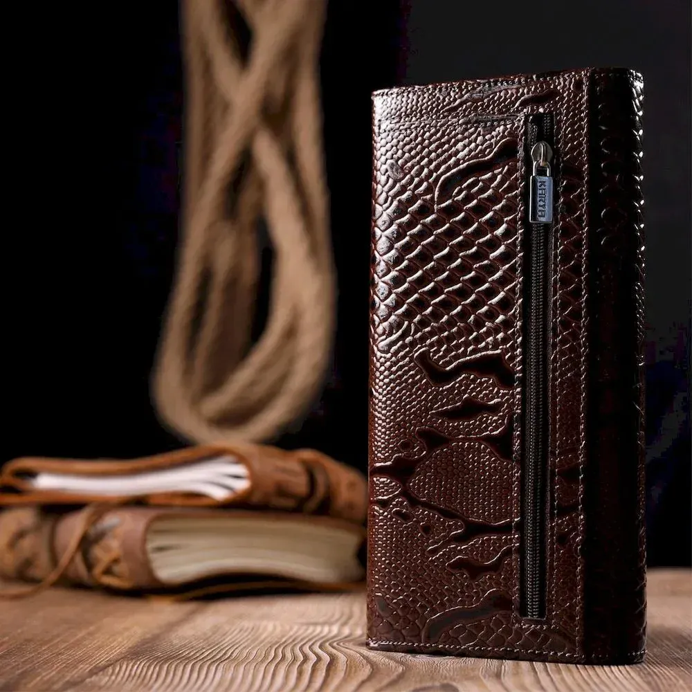 Лакований горизонтальний гаманець з натуральної шкіри з тисненням під змію KARYA 21170 Коричневий