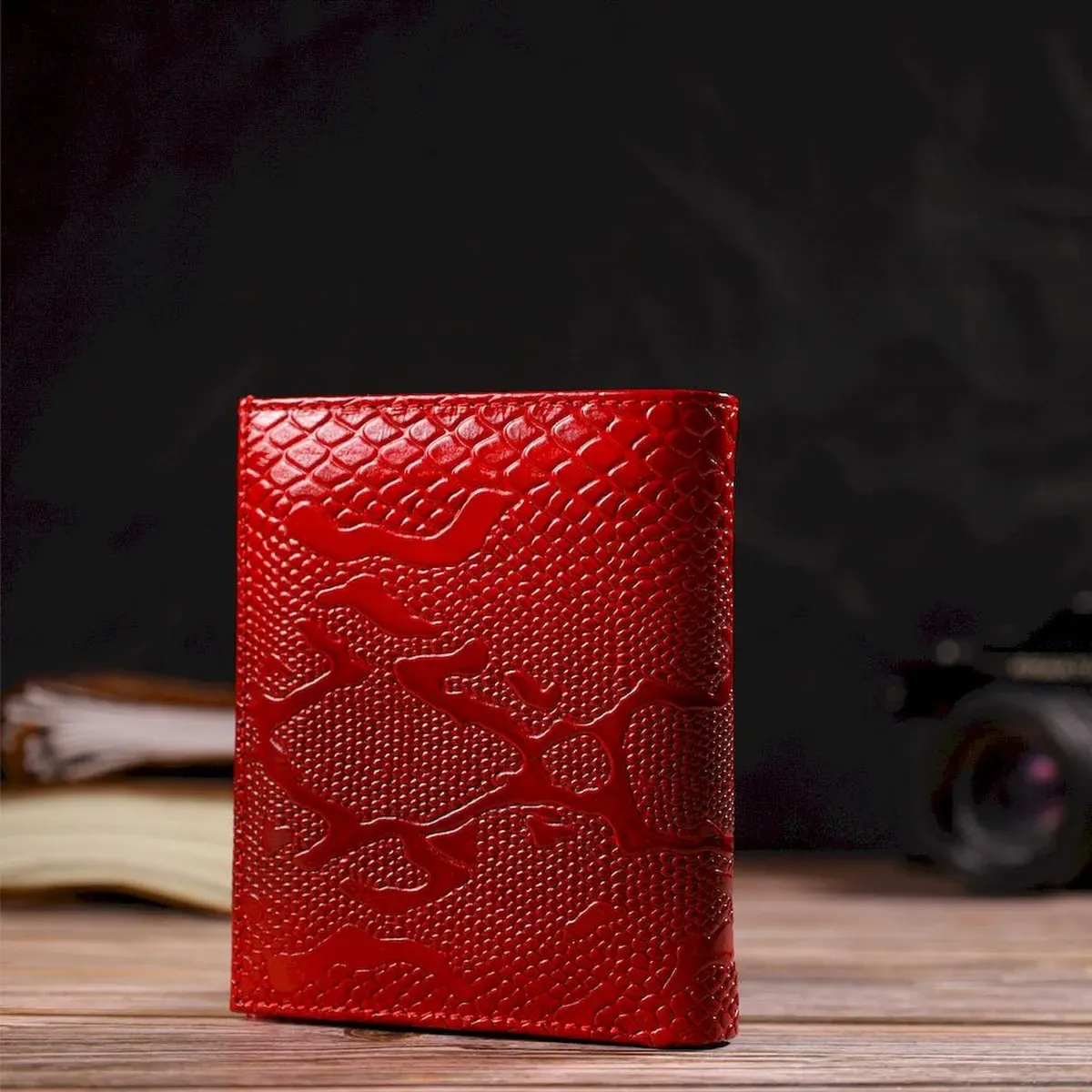 Лакований гаманець для жінок середнього розміру з натуральної шкіри з тисненням під рептилію CANPELLINI 21816 Червоний