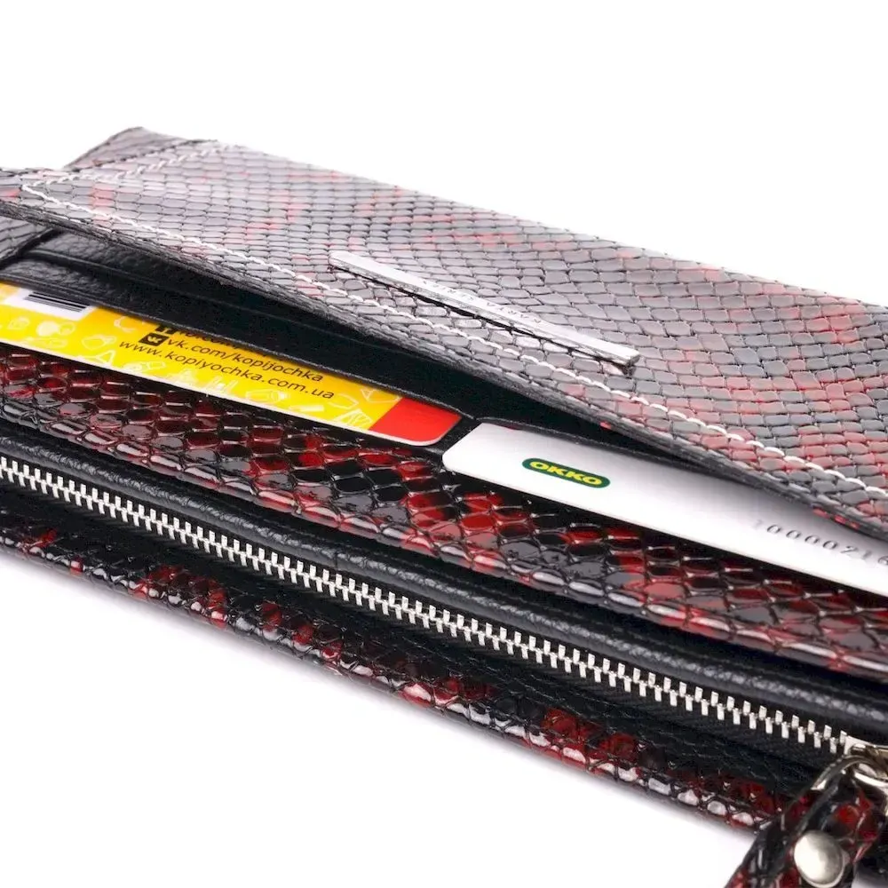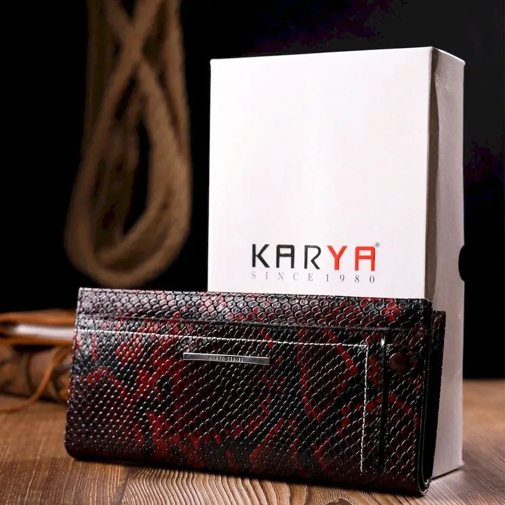 Лакований жіночий горизонтальний гаманець з натуральної шкіри під рептилію KARYA 21099