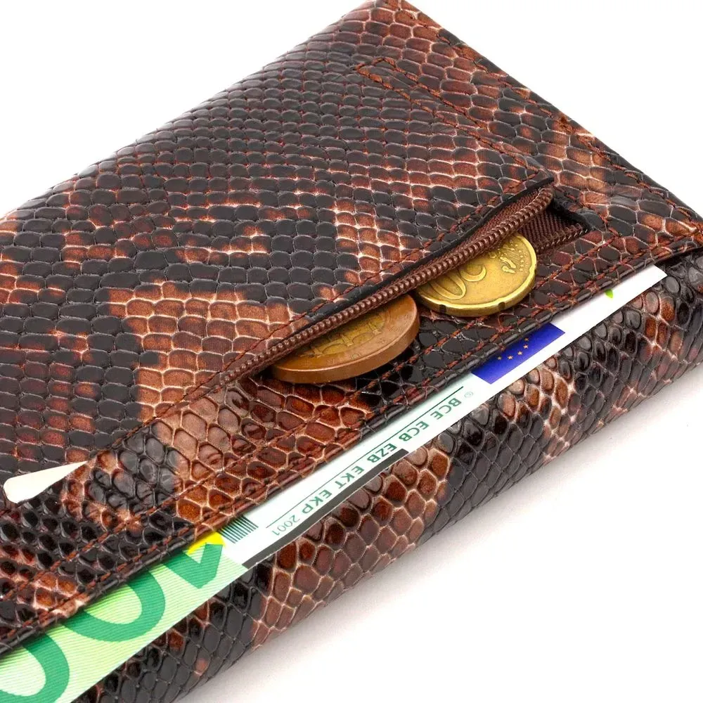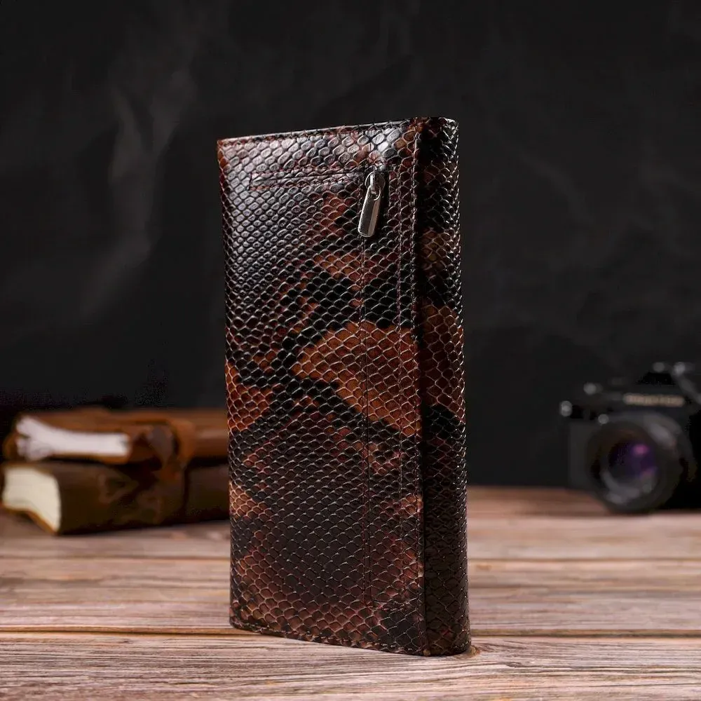 Лакований жіночий гаманець із фактурної натуральної шкіри з тисненням під змію CANPELLINI 21711 Коричневий