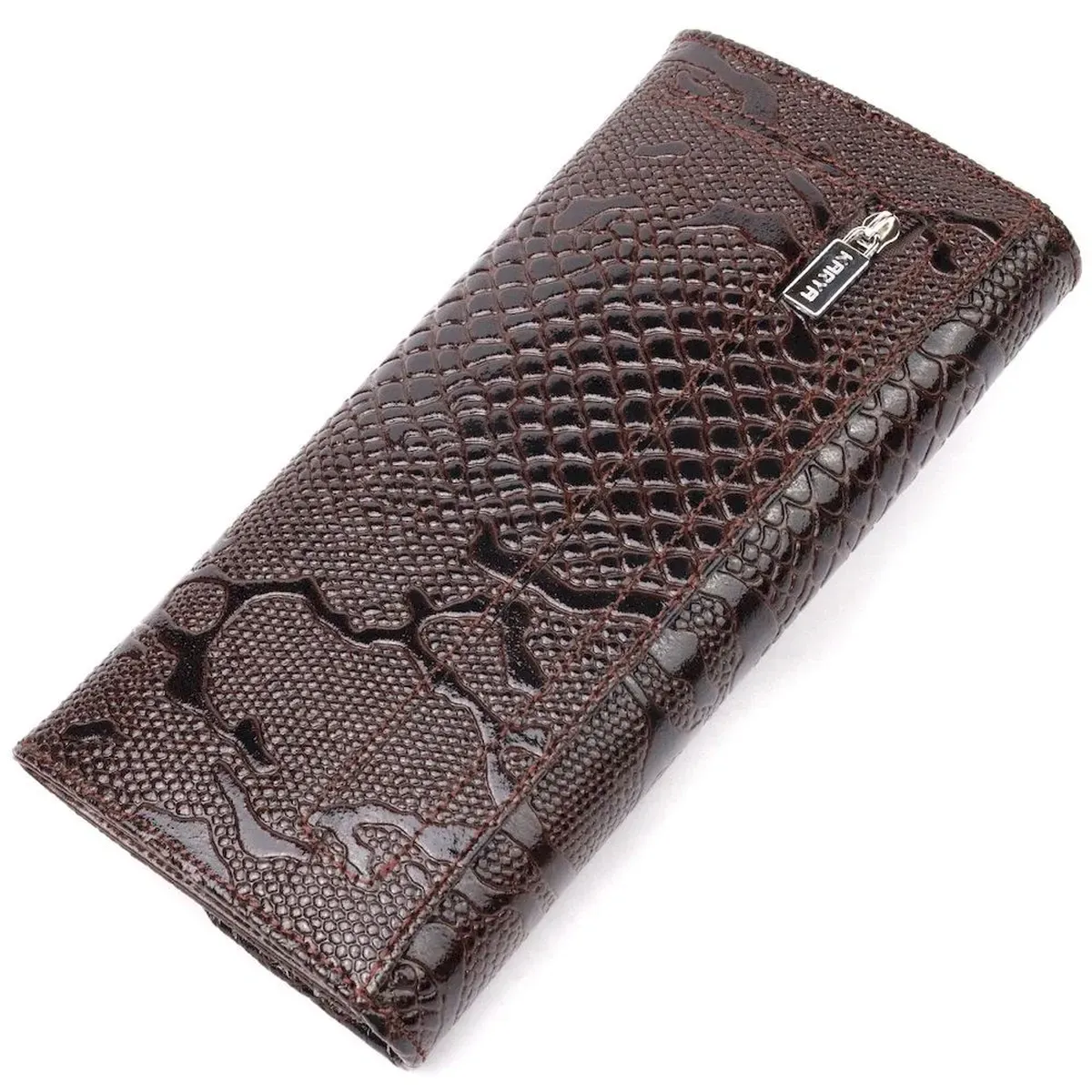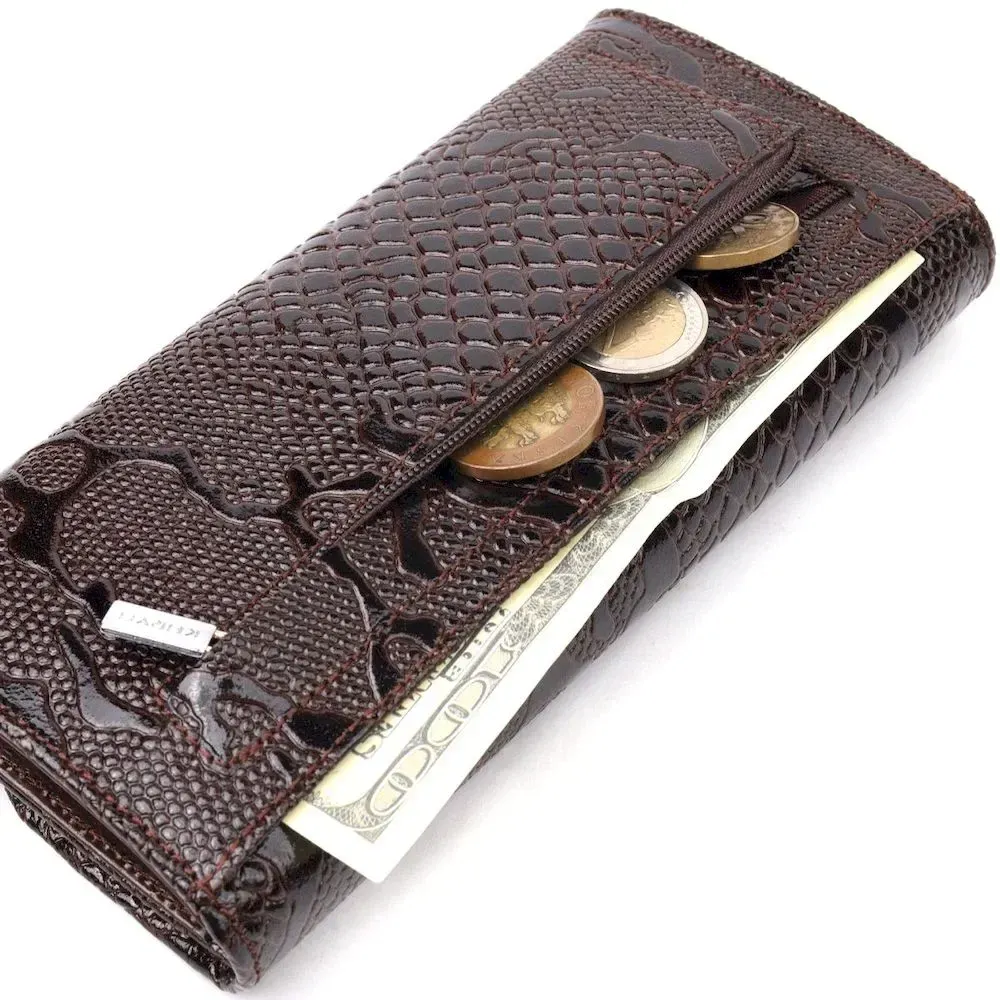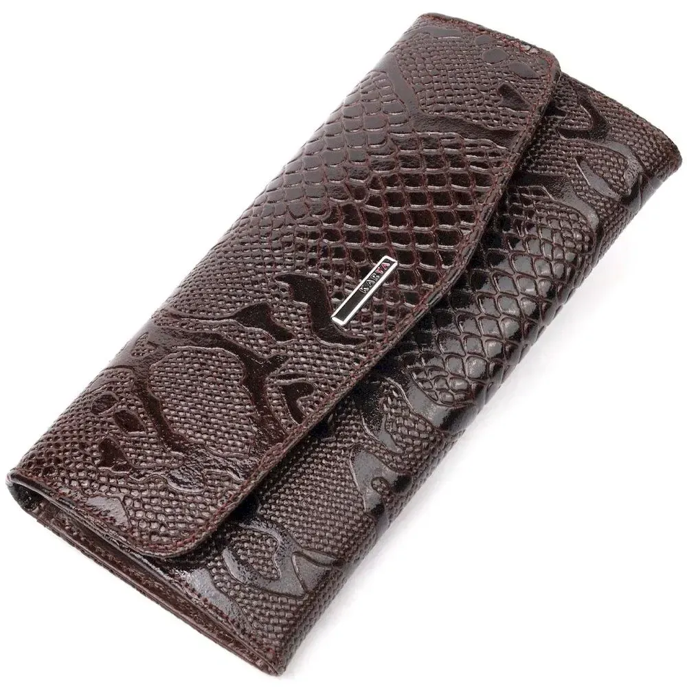 Лакований жіночий гаманець із клапаном із фактурної шкіри під рептилію KARYA 21114 Коричневий