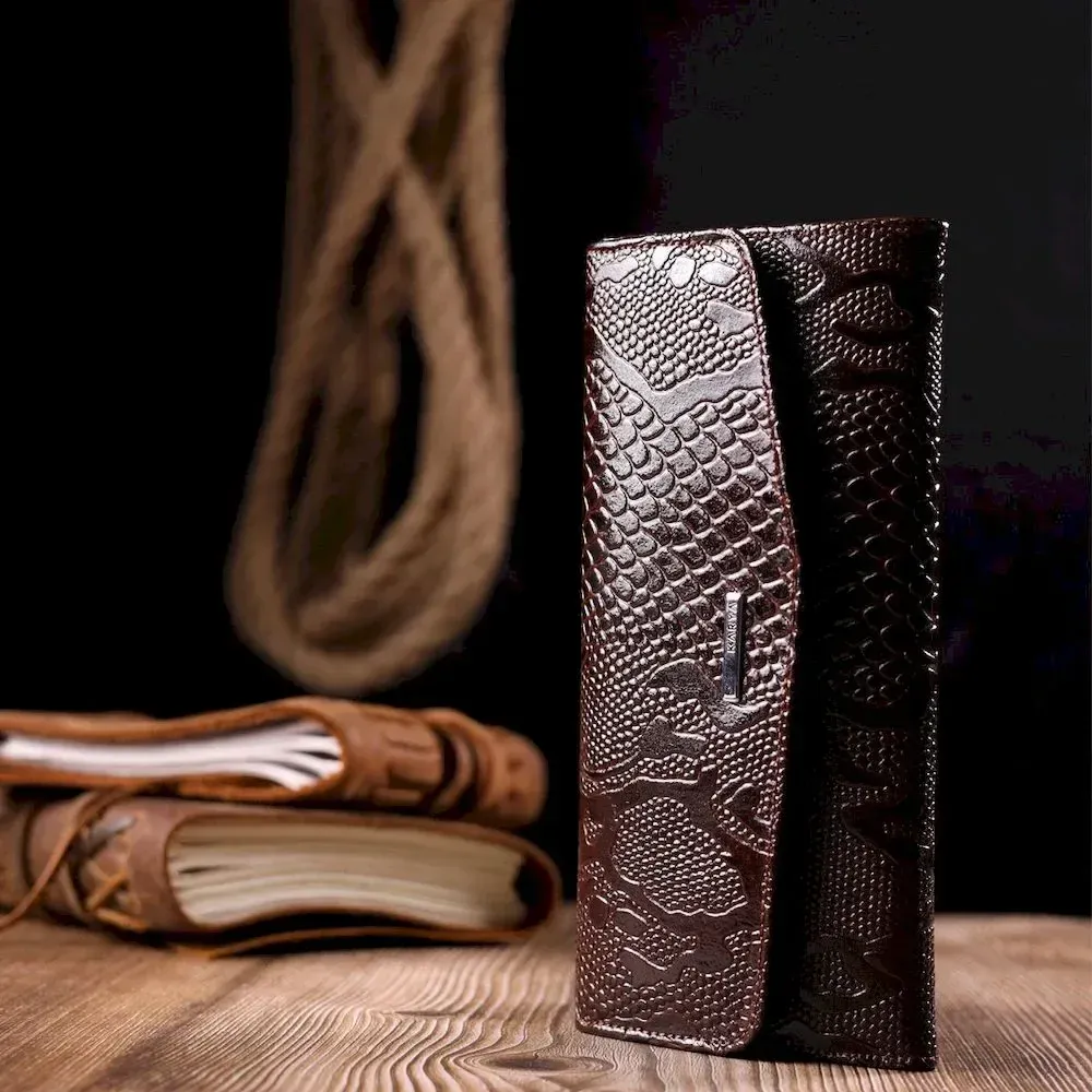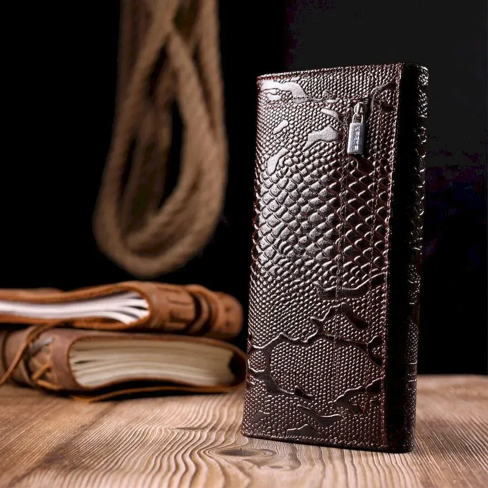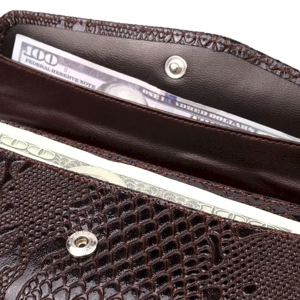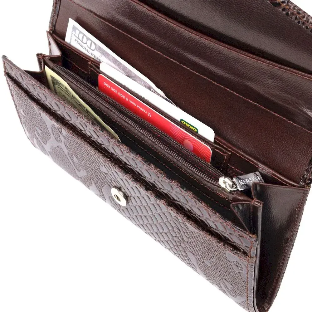 Лакований жіночий гаманець із клапаном із фактурної шкіри під рептилію KARYA 21114 Коричневий