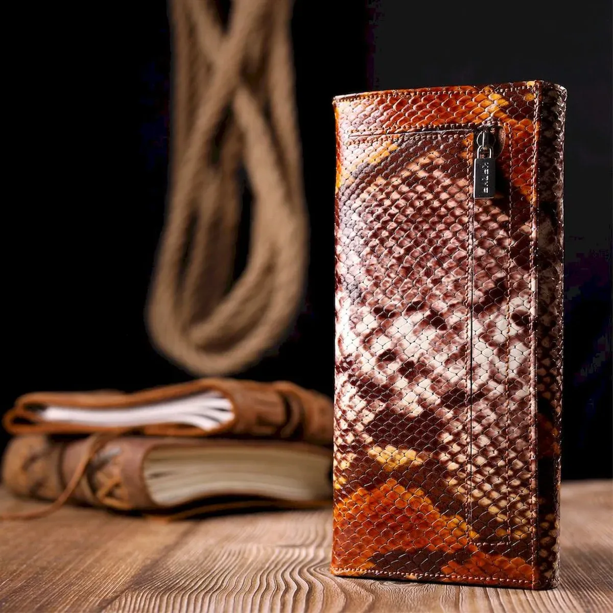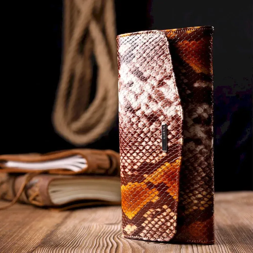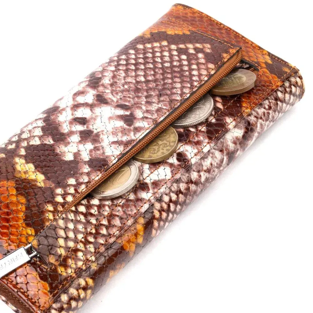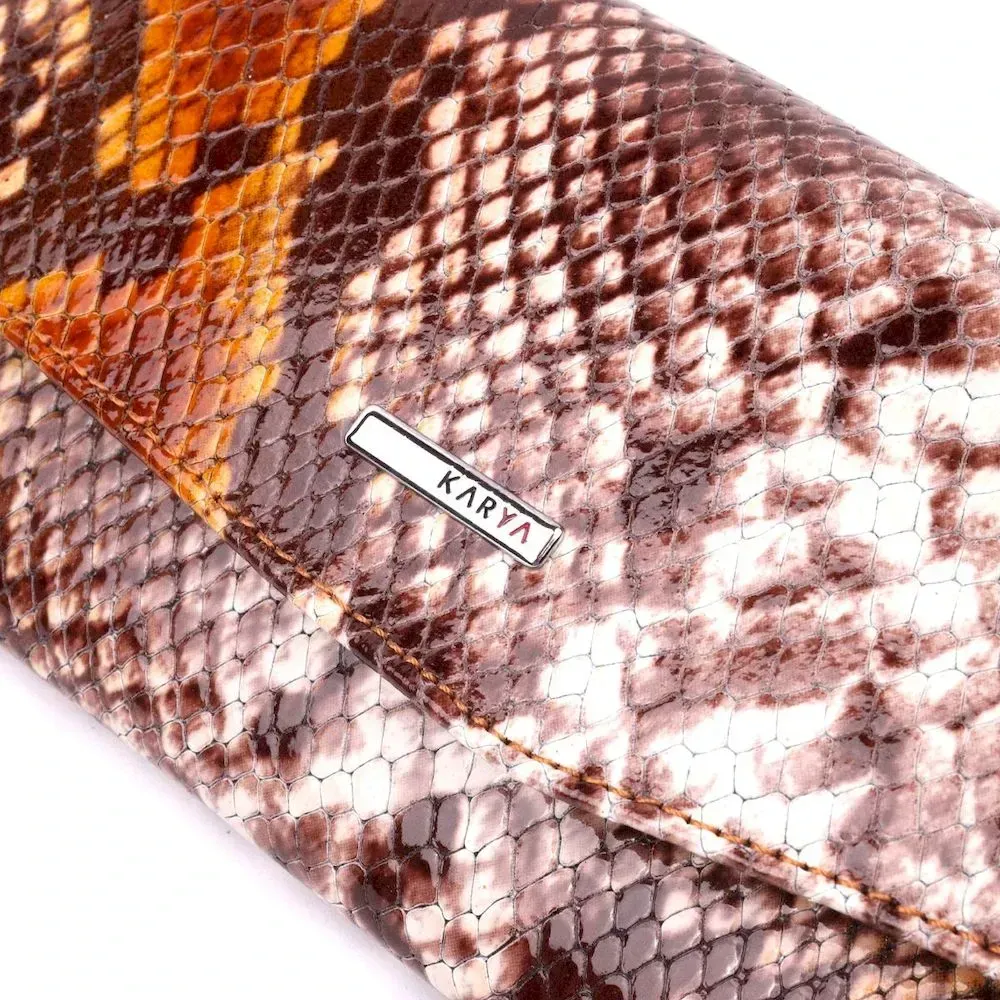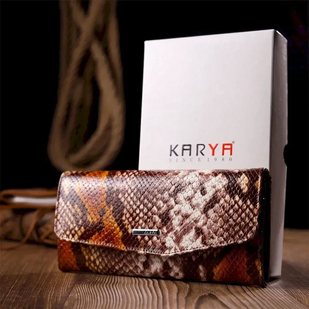 Лакований жіночий гаманець з клапаном із фактурної шкіри під рептилію KARYA 21117